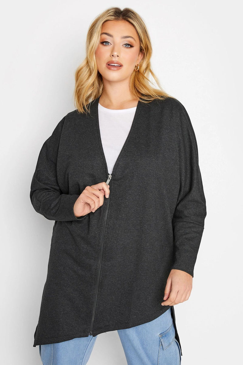 Büyük Beden Asimetrik Kesim Fermuarlı Uzun Kollu İnce Hırka 301222