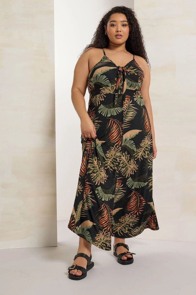 Büyük Beden Askılı Göğüs Dekolteli Çiçek Desenli Maxi Elbise 303485