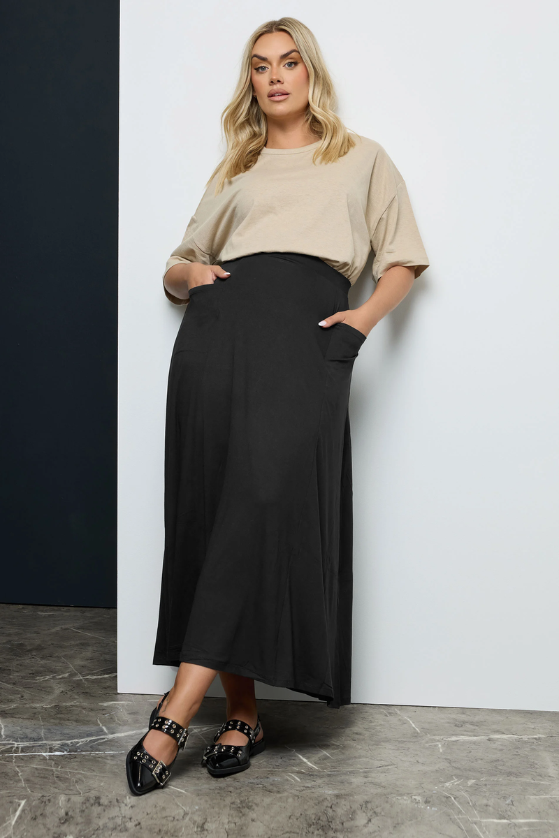 Büyük Beden Beli Lastikli Cep Detaylı Uzun Kesim Etek 160051