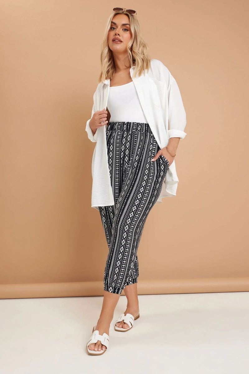 Büyük Beden Beli Lastikli Cepli Desenli Şalvar Pantolon 145265