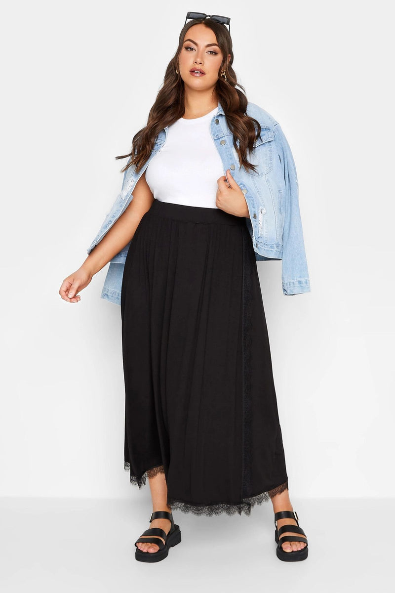 Büyük Beden Beli Lastikli Cepsiz Dantel Detaylı Uzun Etek 215519