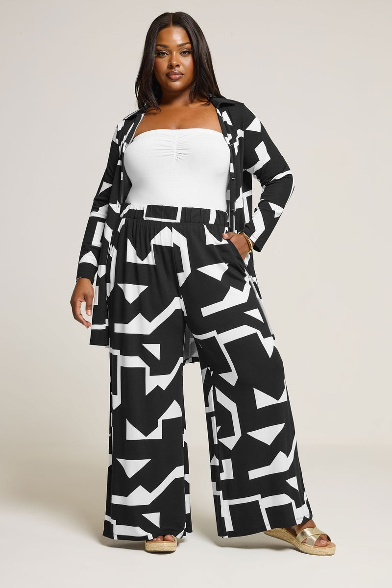 Büyük Beden Beli Lastikli Soyut Desenli Bol Paça Cepli Pantolon 304089