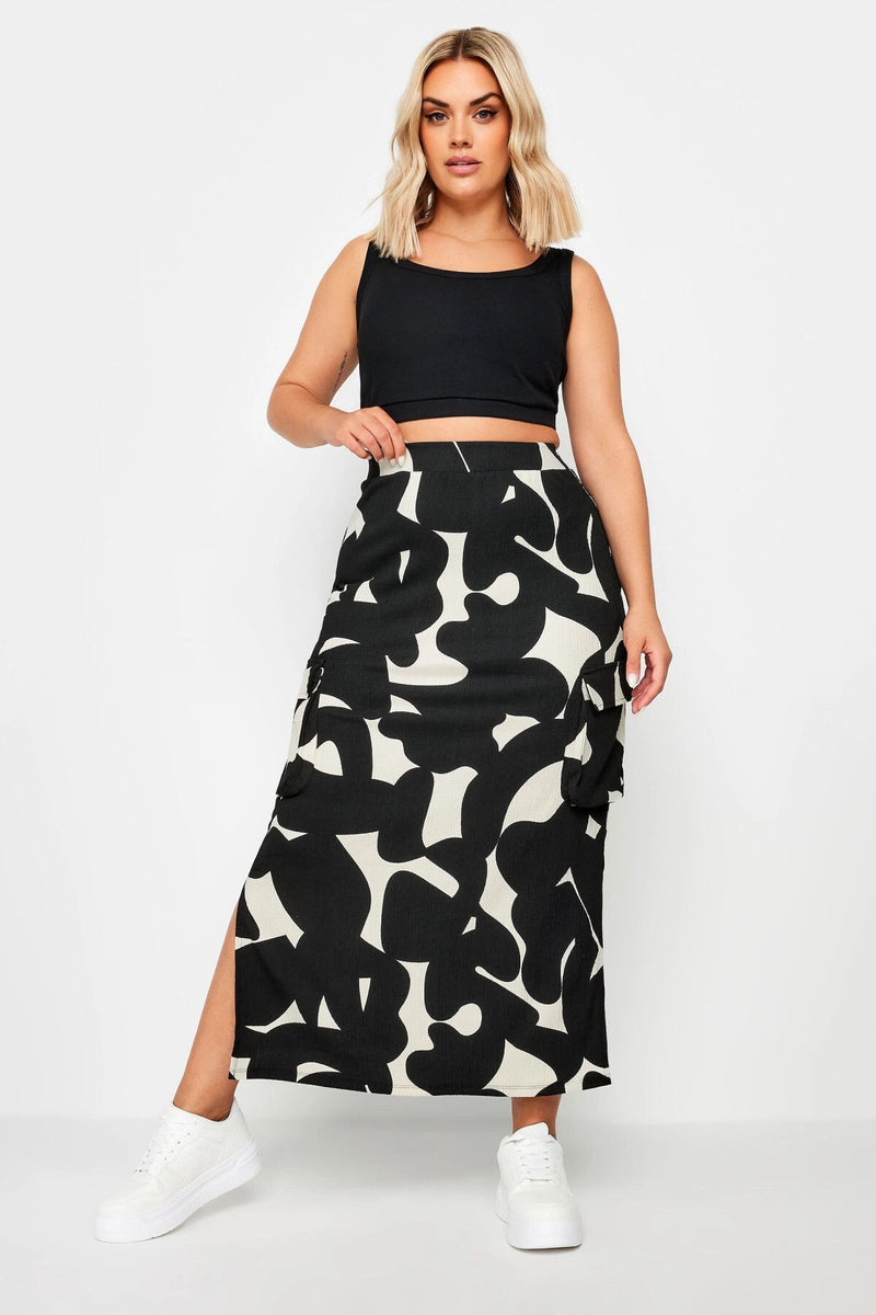 Büyük Beden Beli Lastikli Yanları Cep Detaylı Yırtmaçlı Desenli Etek 160296