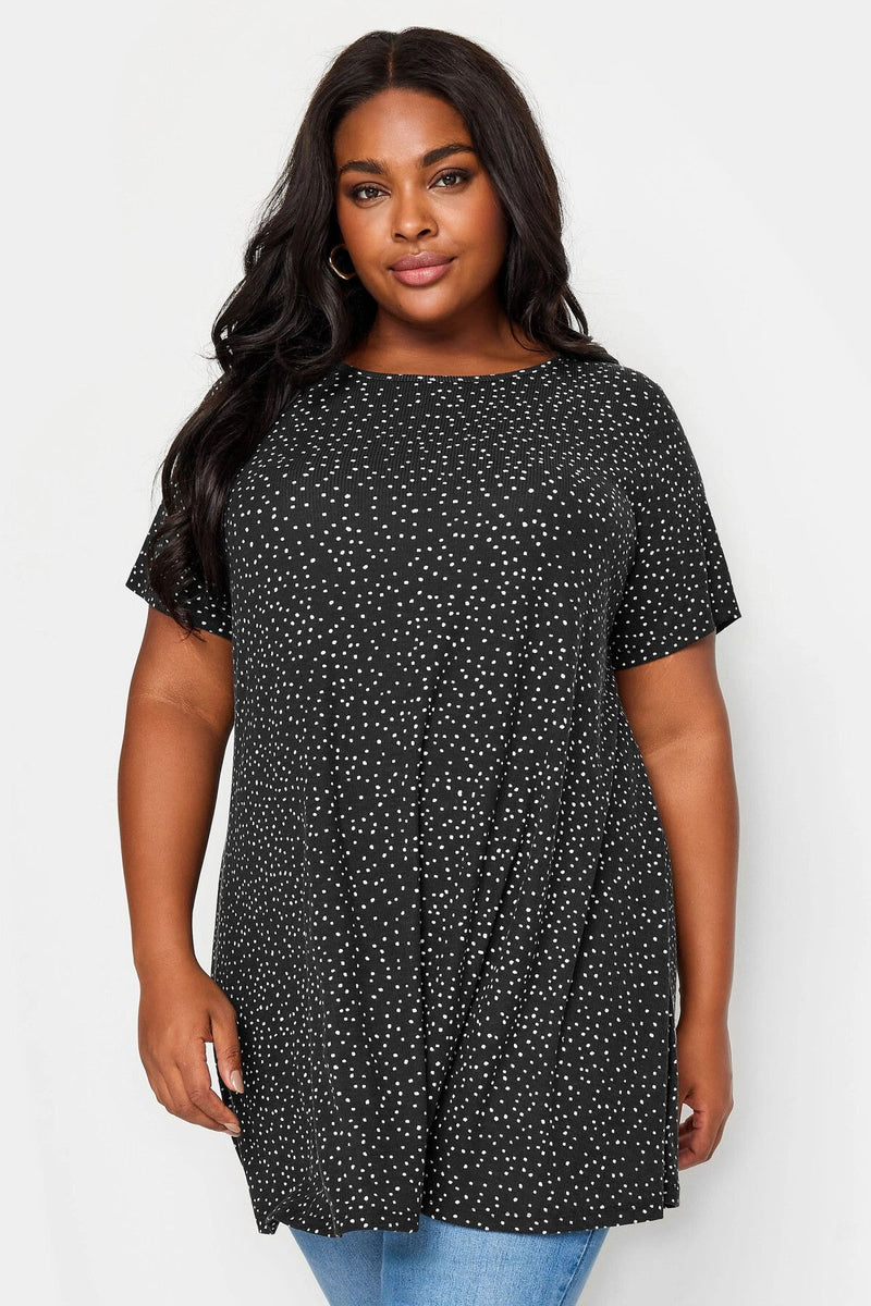 Büyük Beden Bisiklet Yaka Kısa Kollu Nokta Baskılı Bluz 303121