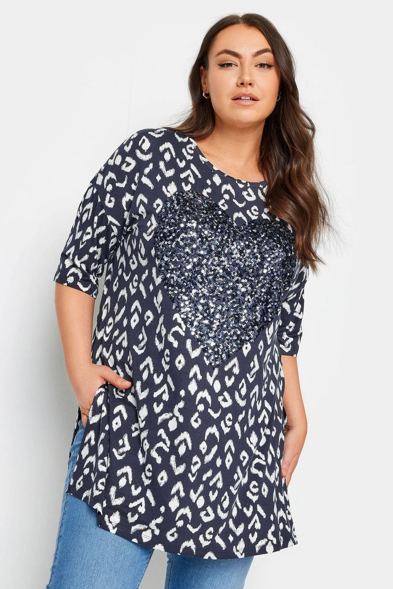 Büyük Beden Bisiklet Yaka Payet İşlemeli Yırtmaç Detaylı Bluz 303078