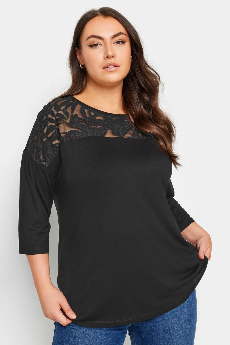 Büyük Beden Bisiklet Yaka Tül Detaylı Fakir Kol Bluz 303026