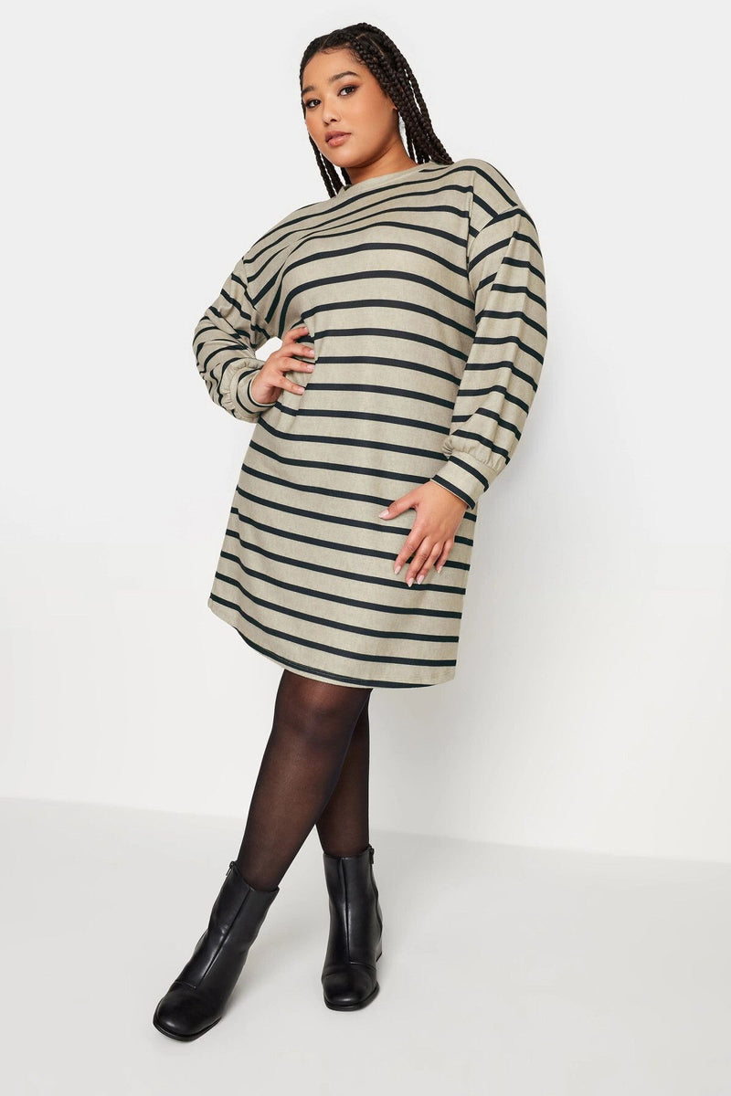Büyük Beden Bisiklet Yaka Uzun Kollu Çizgili Kısa Elbise 302882