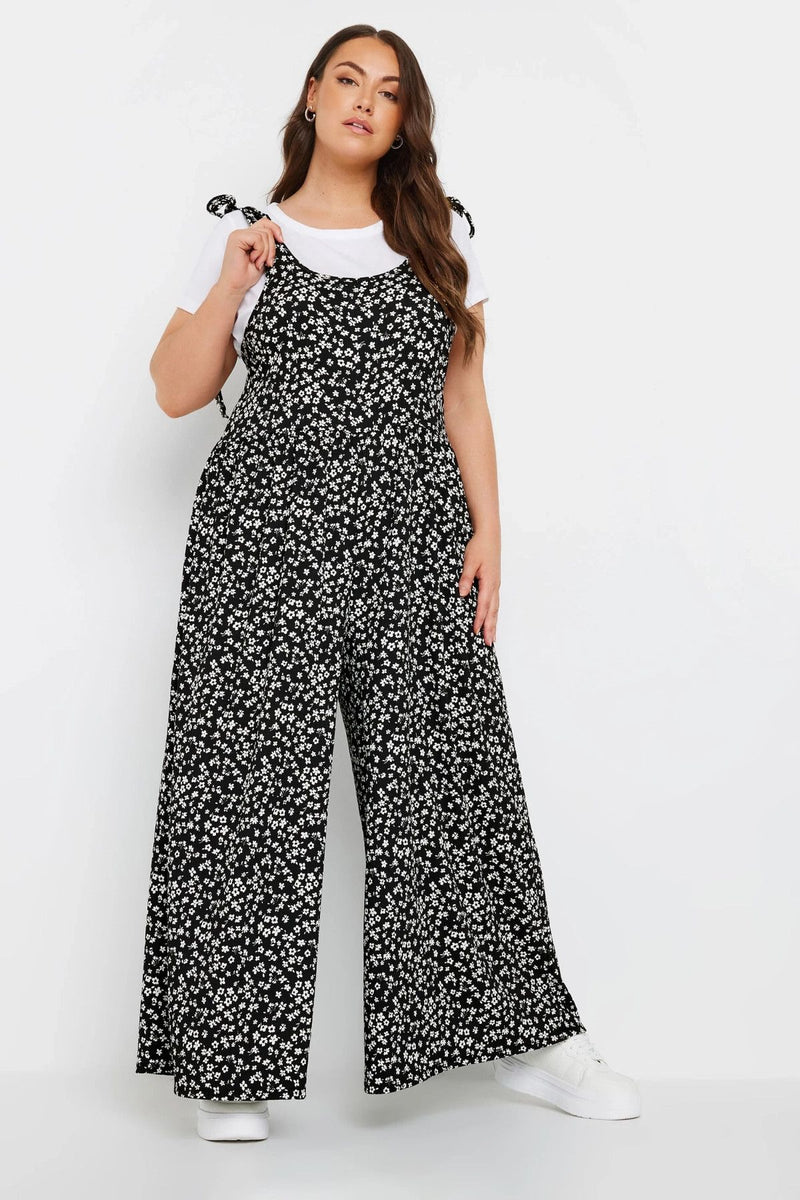 Büyük Beden Bol Paça Askıları Bağlamalı Çiçek Desenli Maxi Tulum 137986