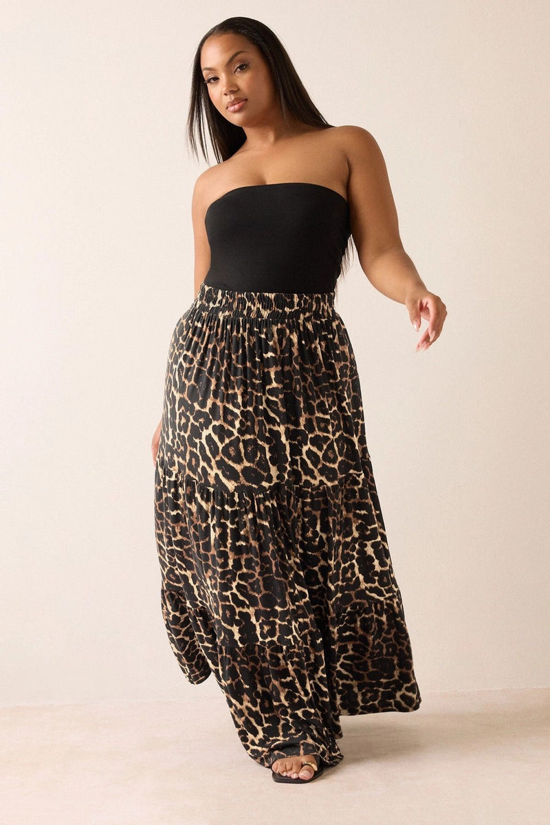 Büyük Beden Bürümcük Kumaş Leopar Desenli Beli Lastikli Etek 304237