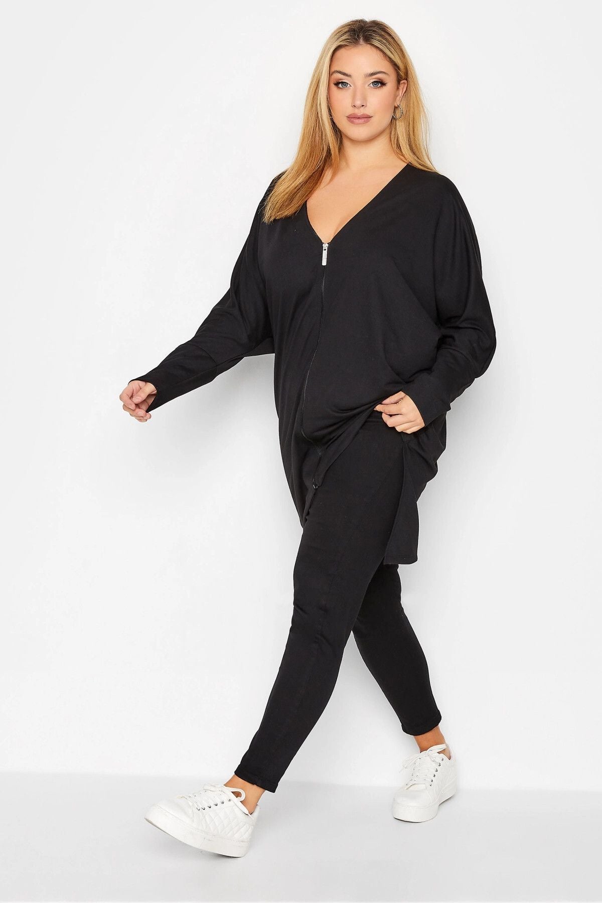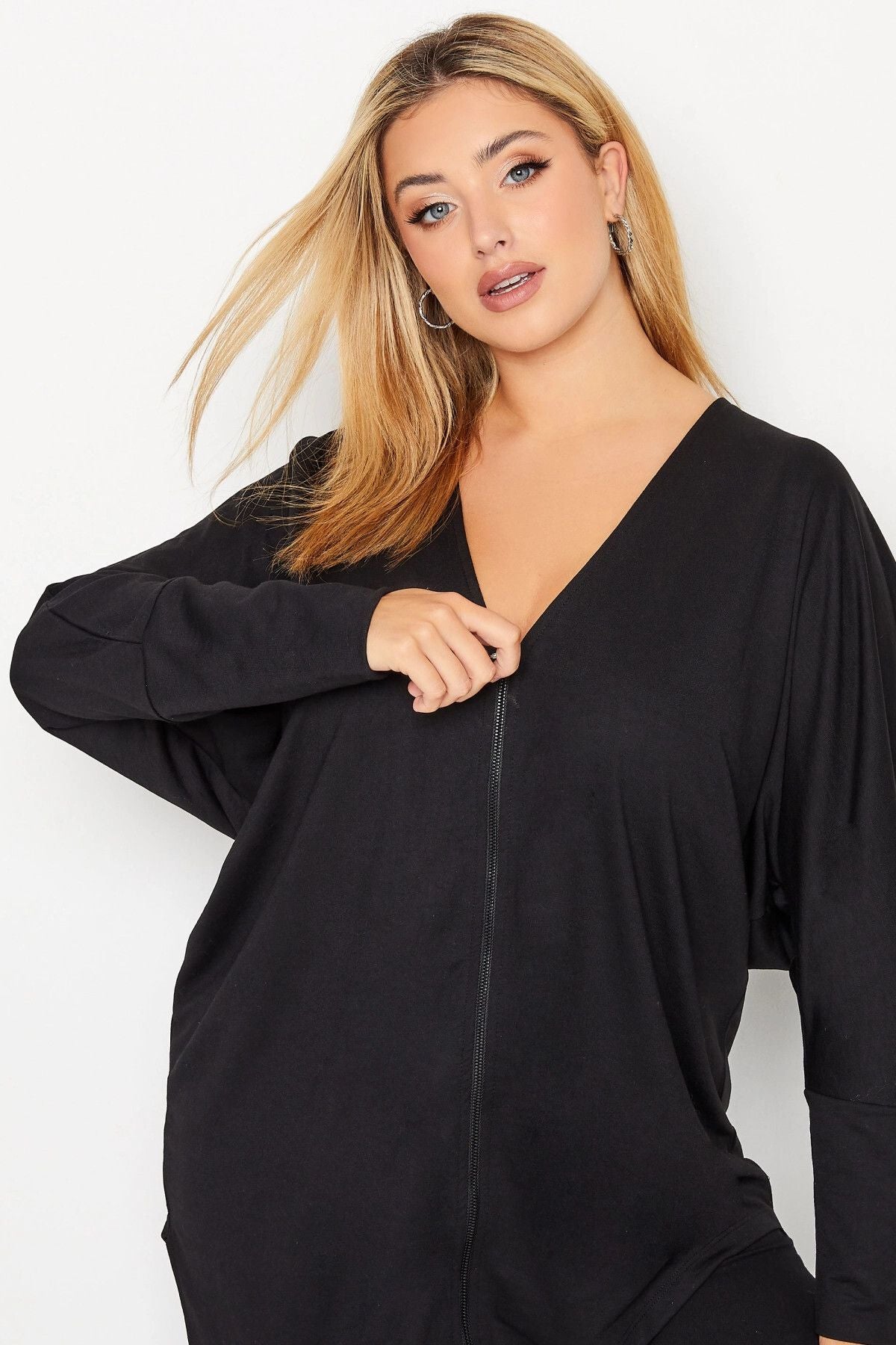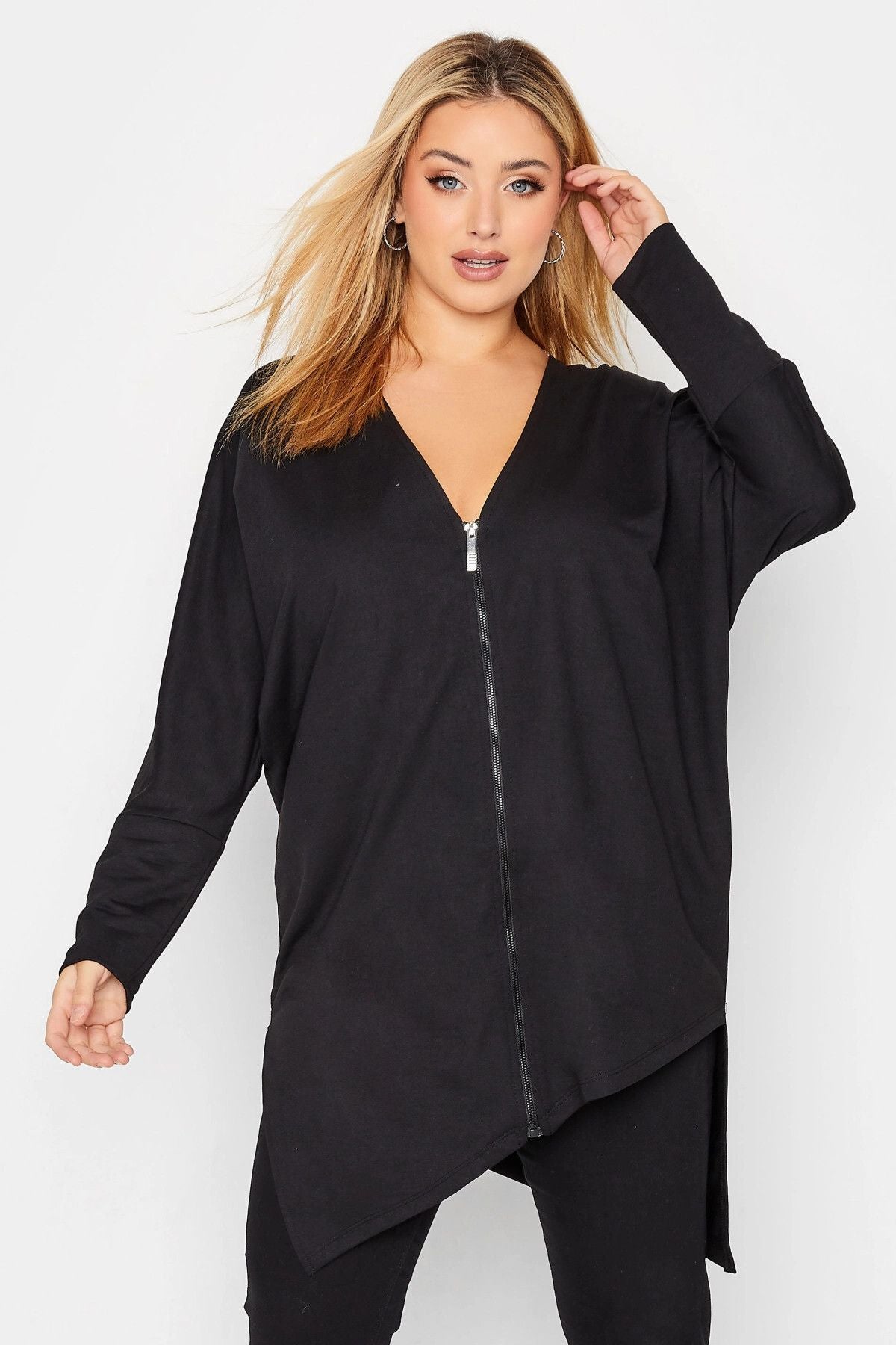 Büyük Beden Asimetrik Kesim Fermuarlı Uzun Kollu Hırka 301221