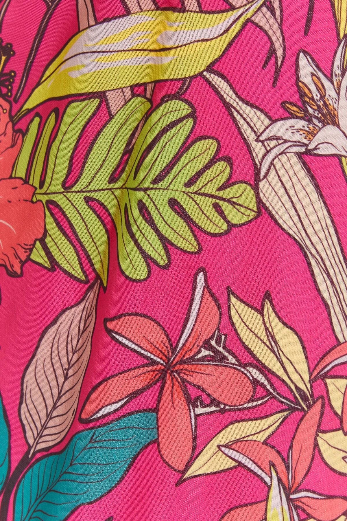 Büyük Beden Asimetrik Kesim Sıfır Kol Yaprak Desenli Bluz 300955