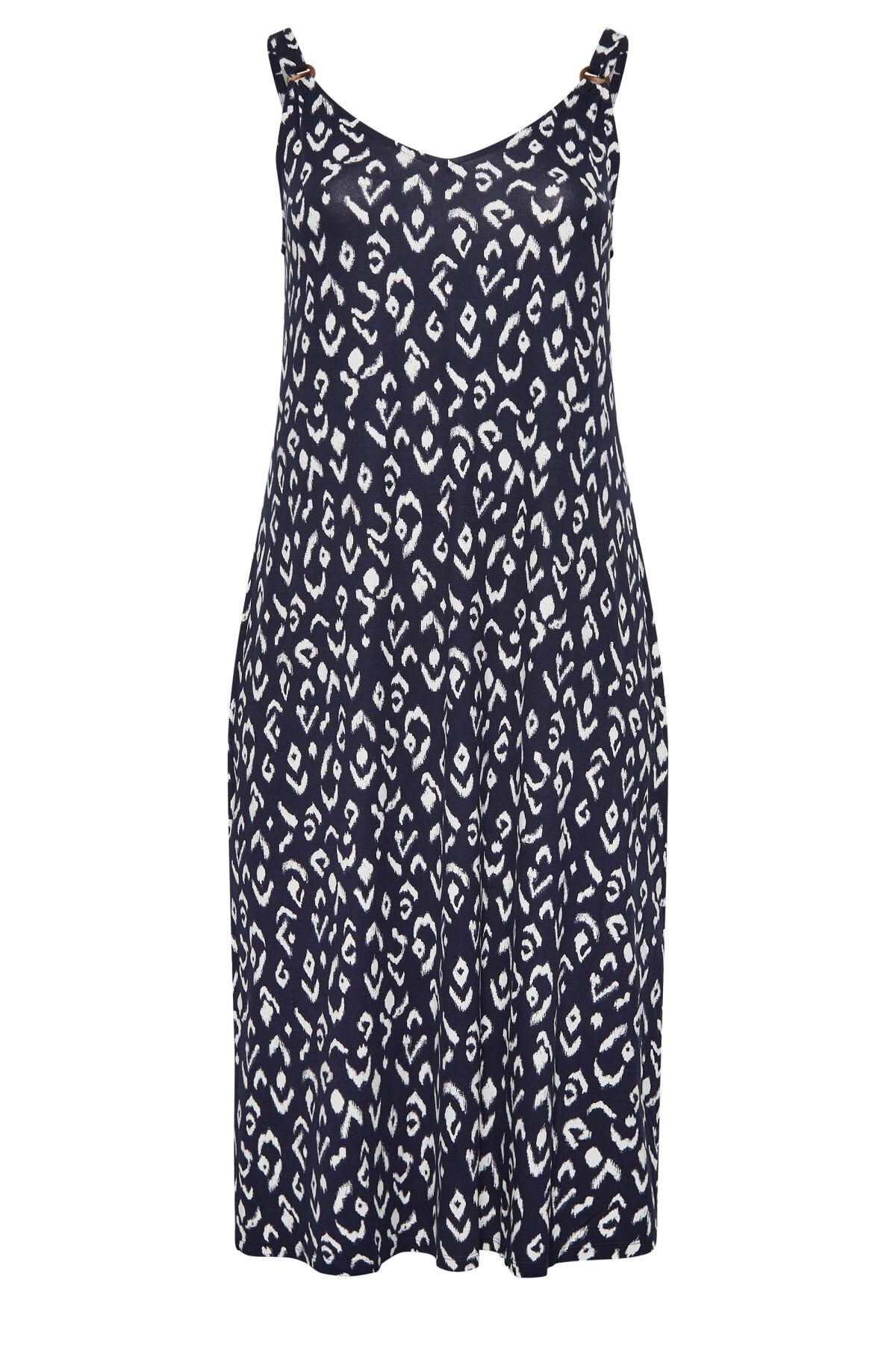 Büyük Beden Askılı Yırtmaç Detaylı Desenli Midi Boy Elbise 150329