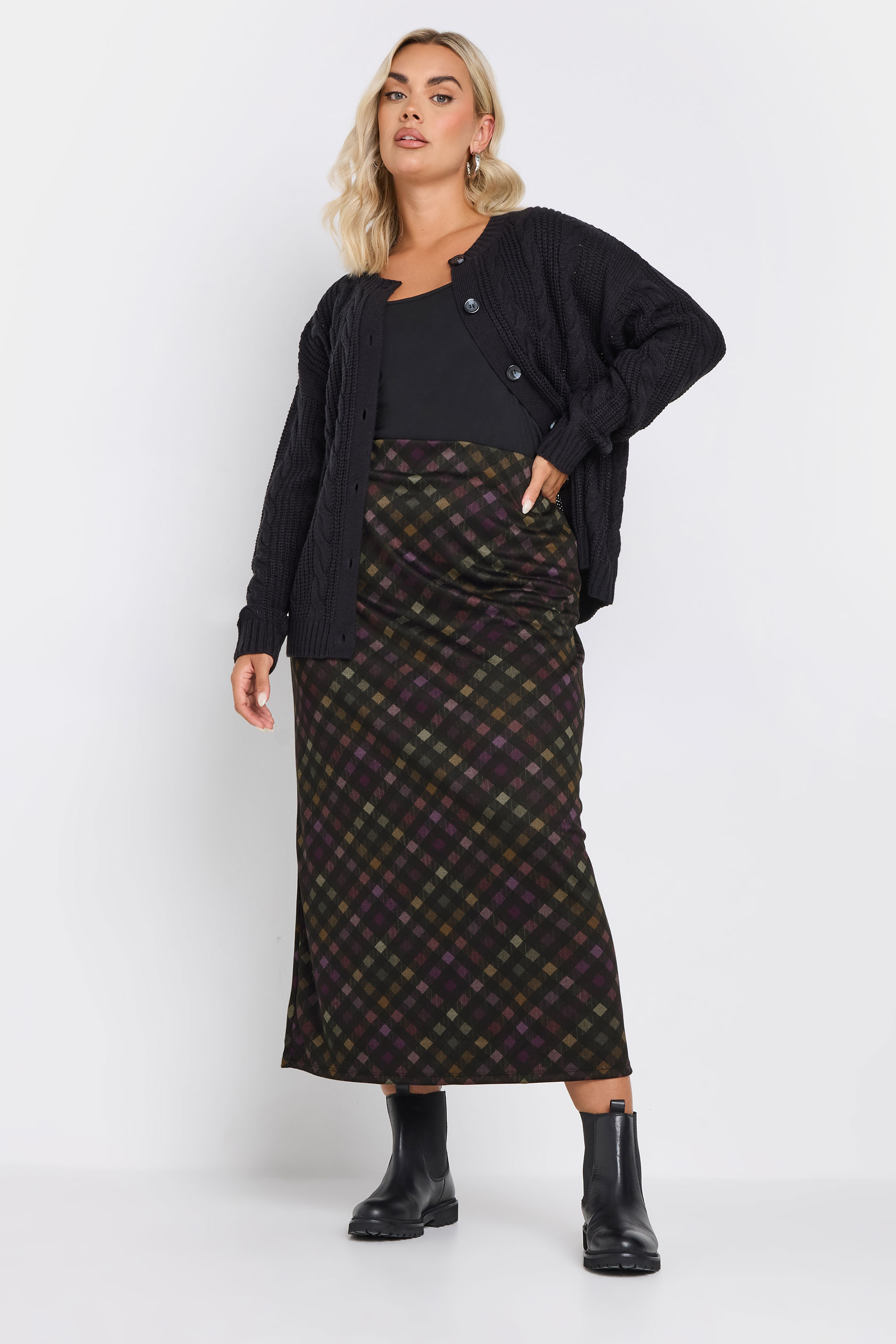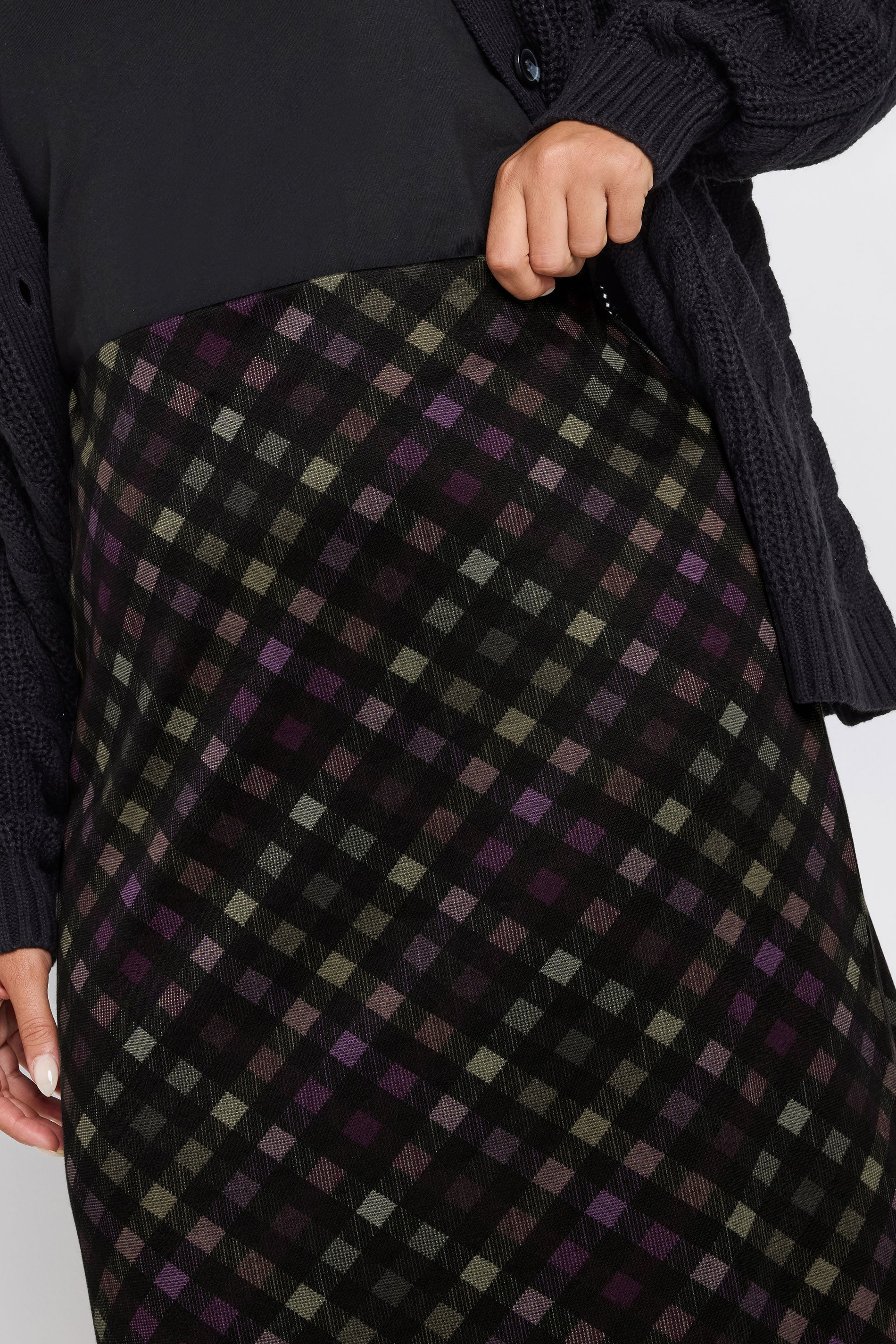 Büyük Beden Baklava Desenli Cepsiz Midi Boy Etek 302495