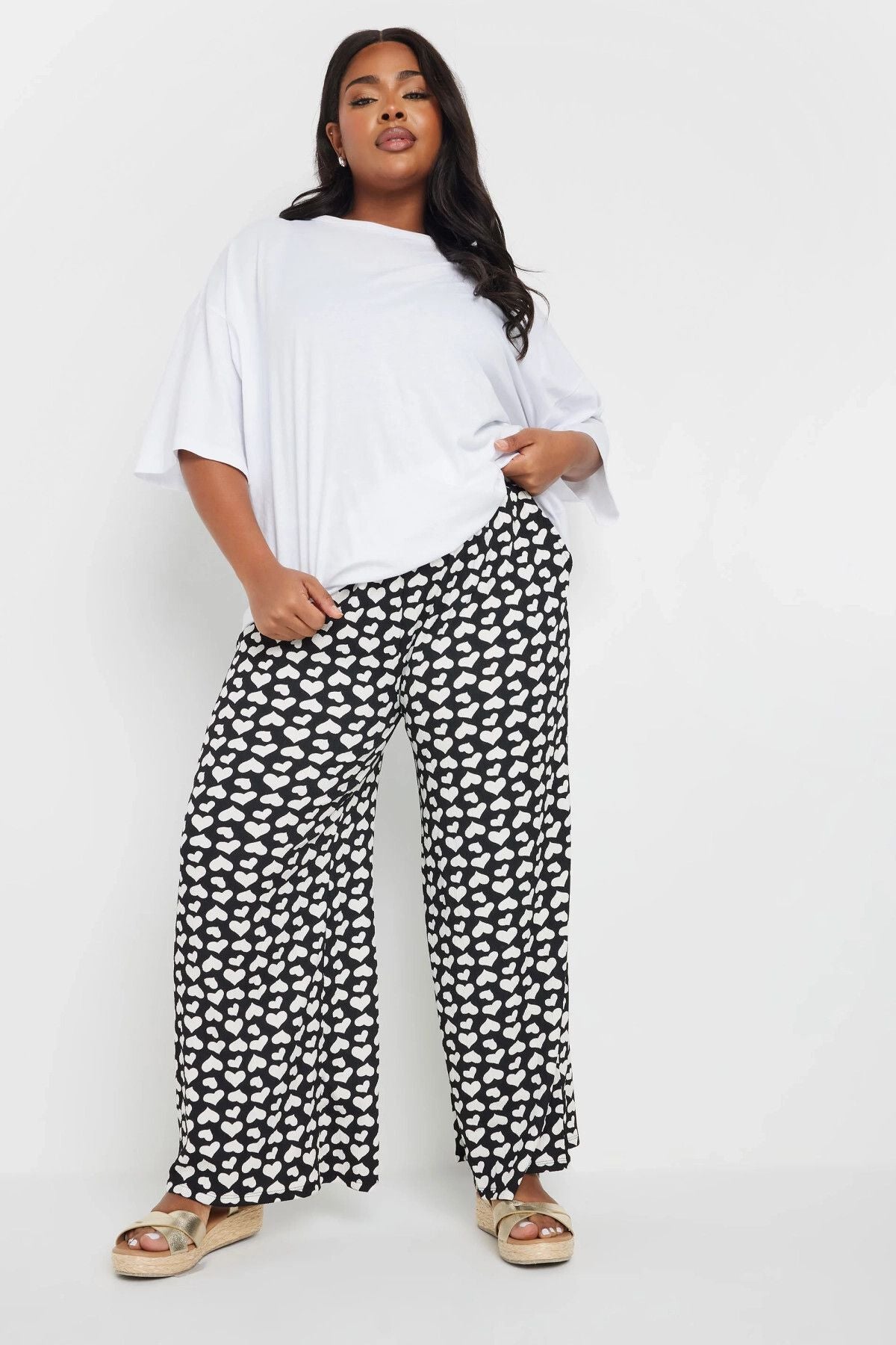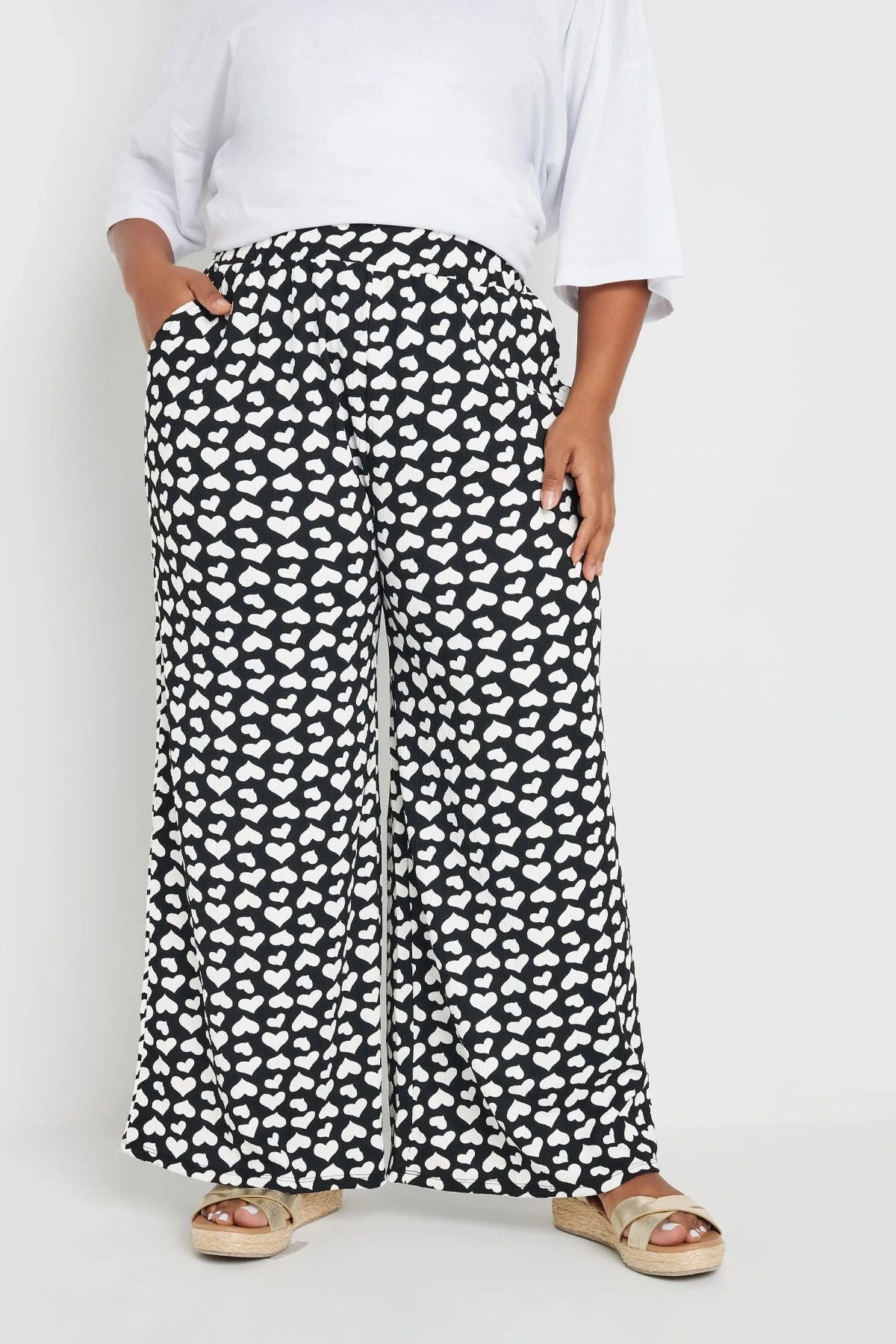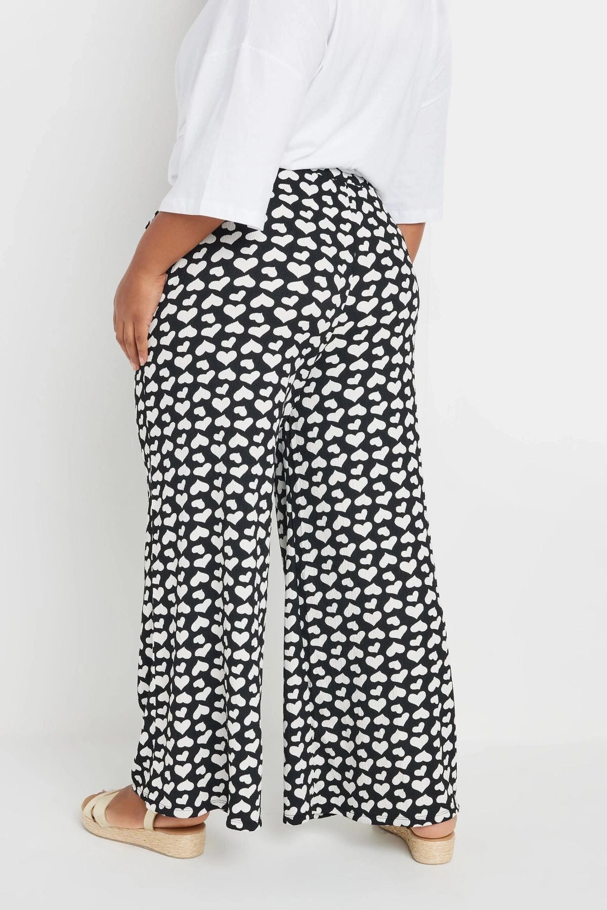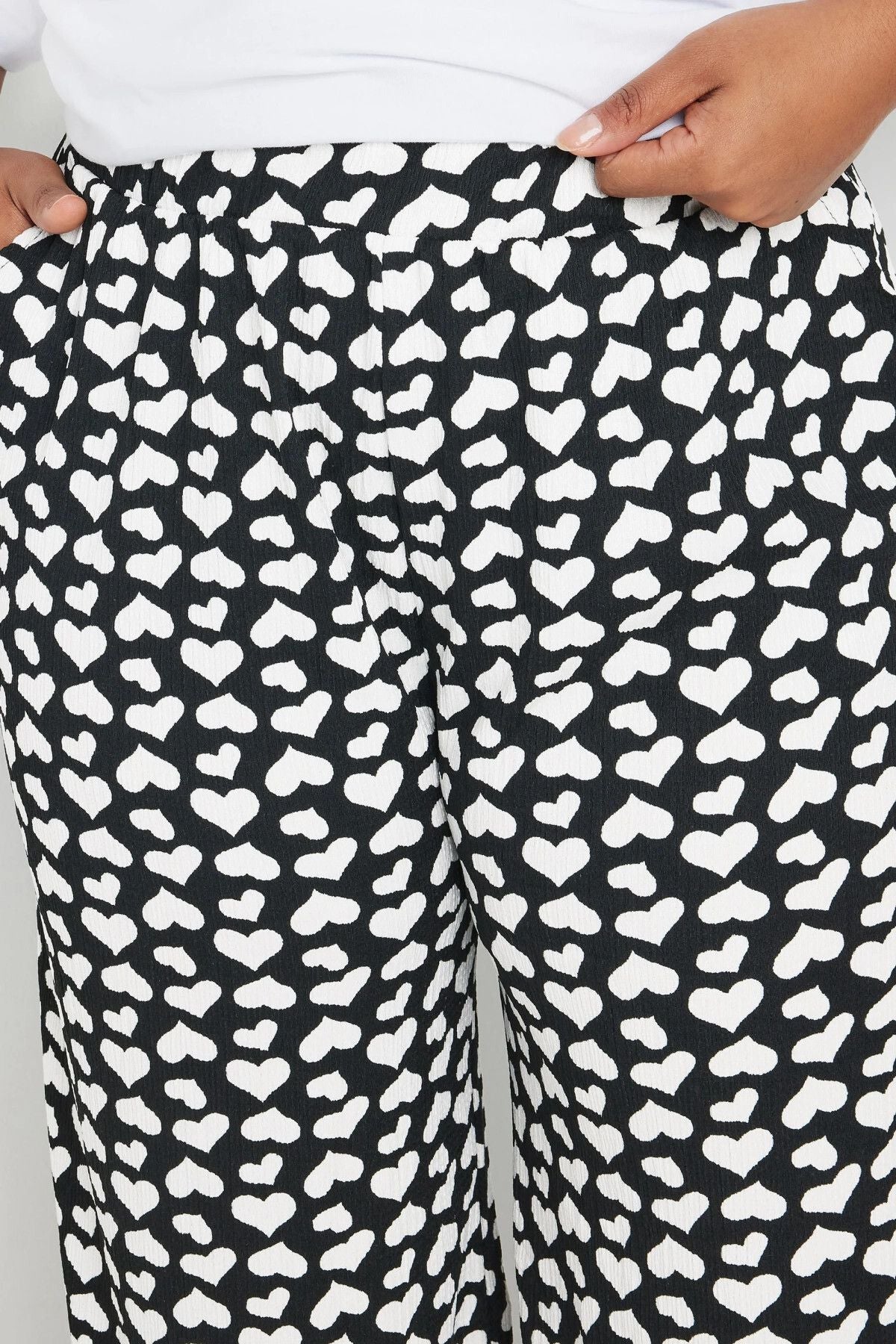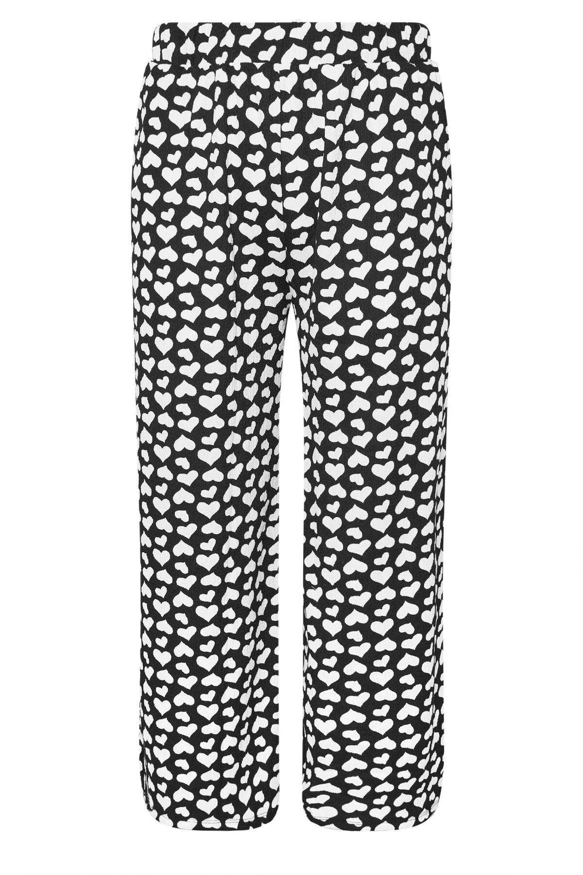 Büyük Beden Beli Lastikli Bol Paça Kalp Desenli Cepli Pantolon 303492
