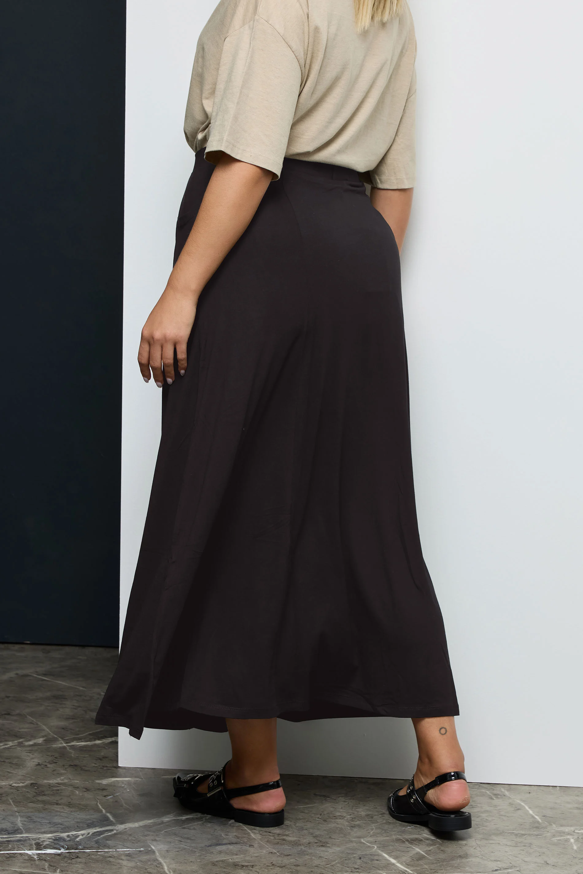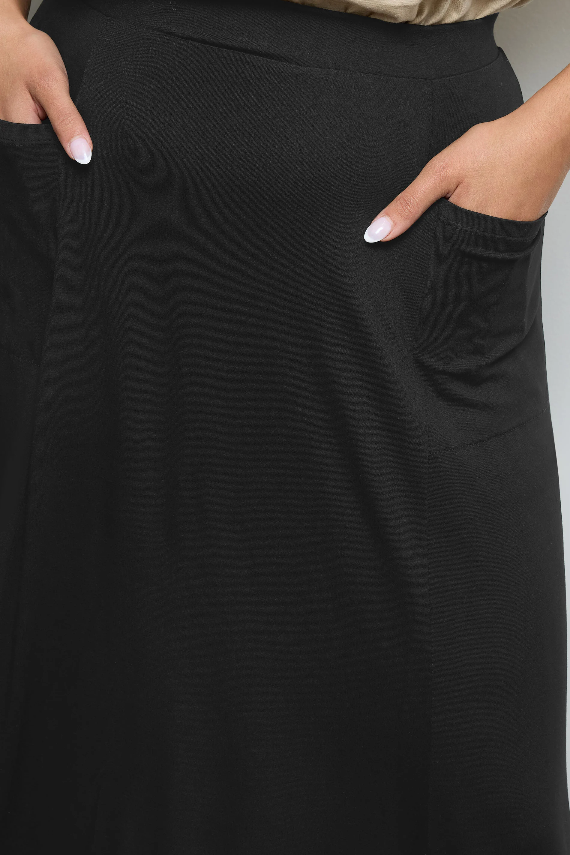 Büyük Beden Beli Lastikli Cep Detaylı Uzun Kesim Etek 160051