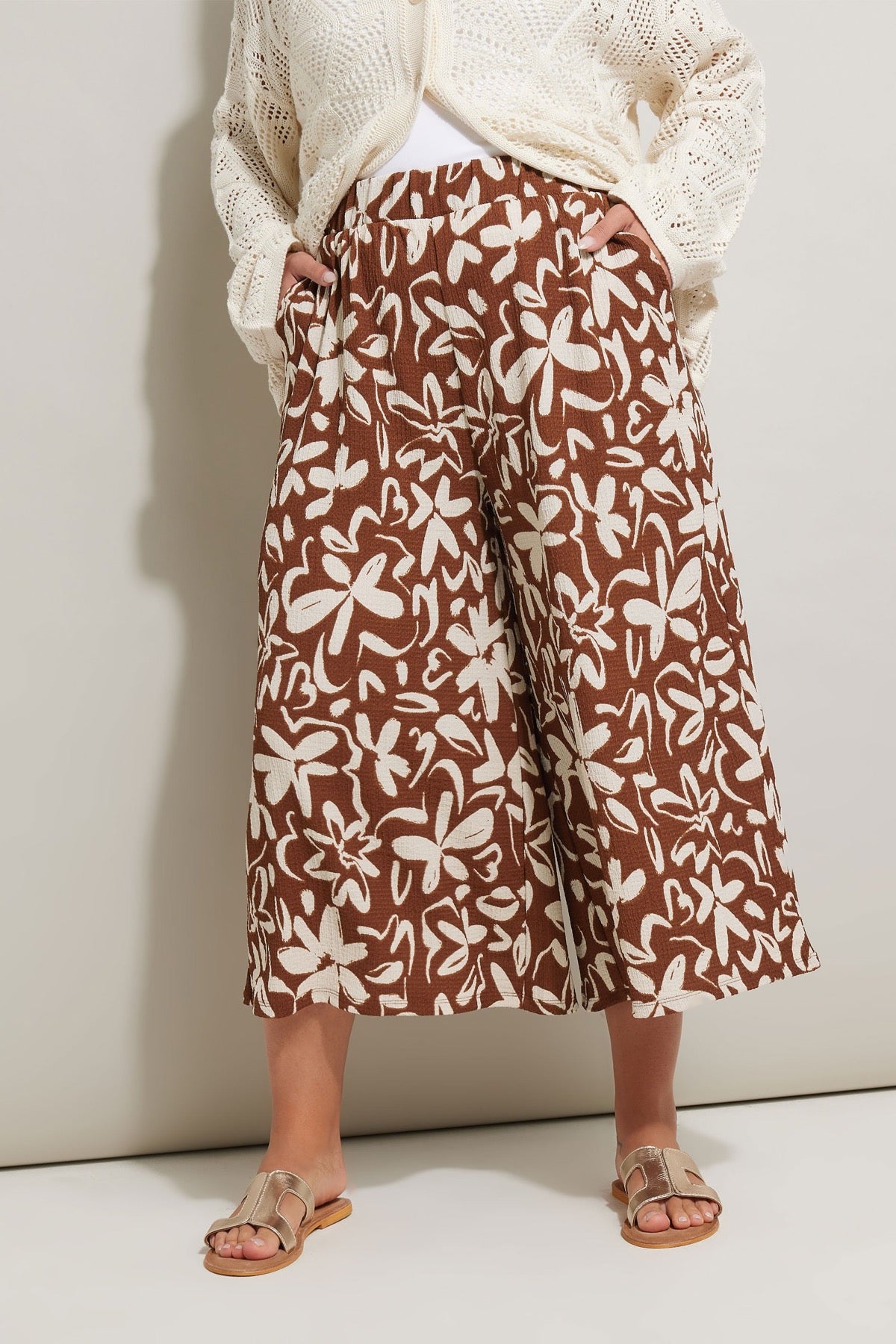 Büyük Beden Beli Lastikli Cepli Çiçek Desenli Kapri Pantolon 145293
