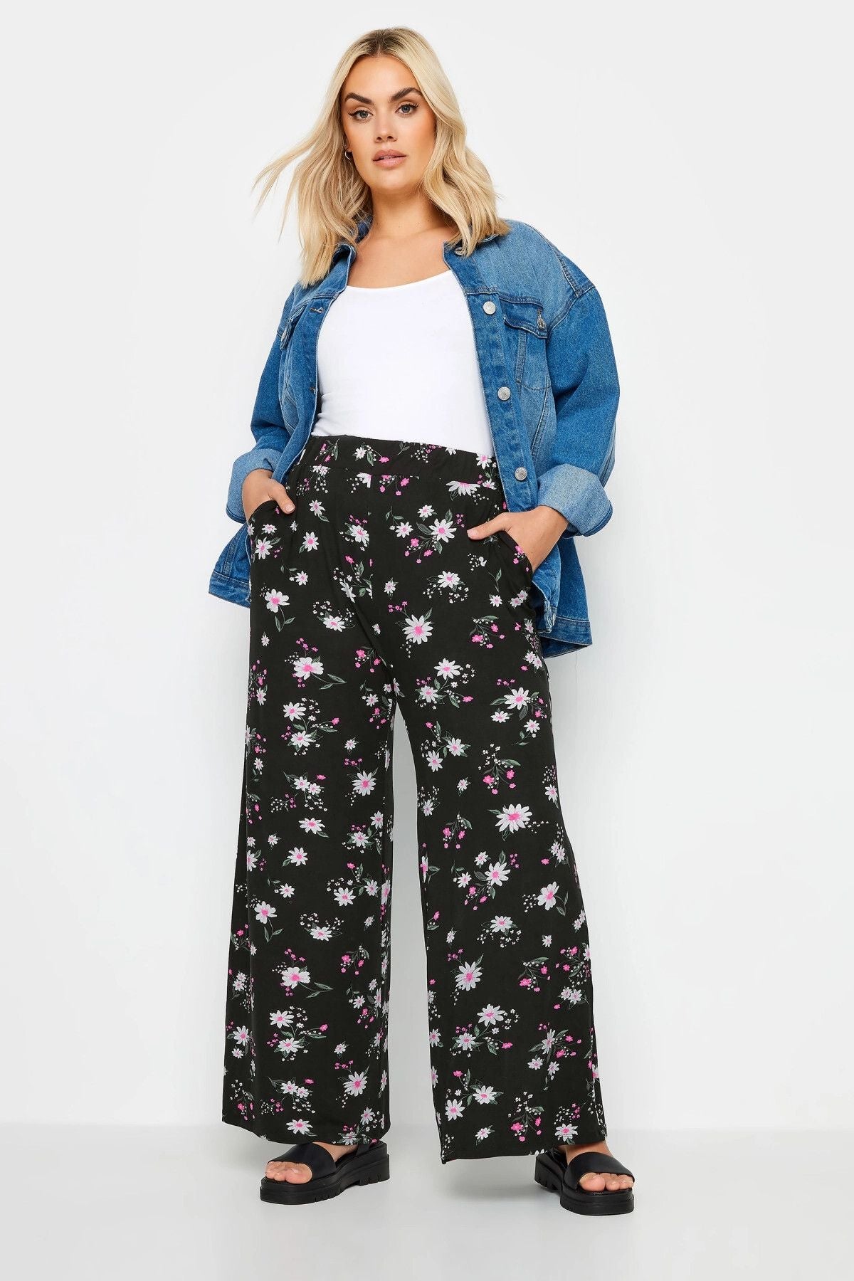 Büyük Beden Beli Lastikli Cepli Desenli Geniş Paça Pantolon 143741