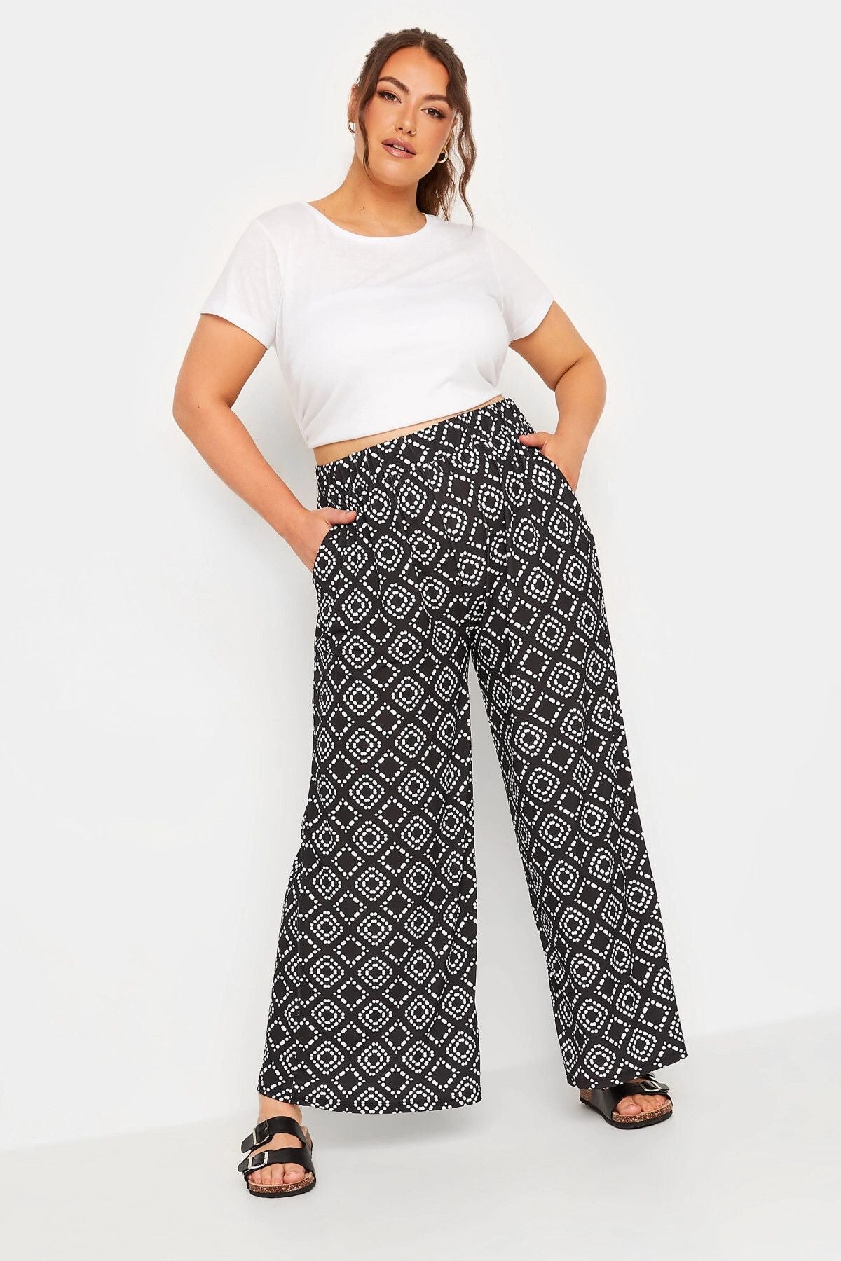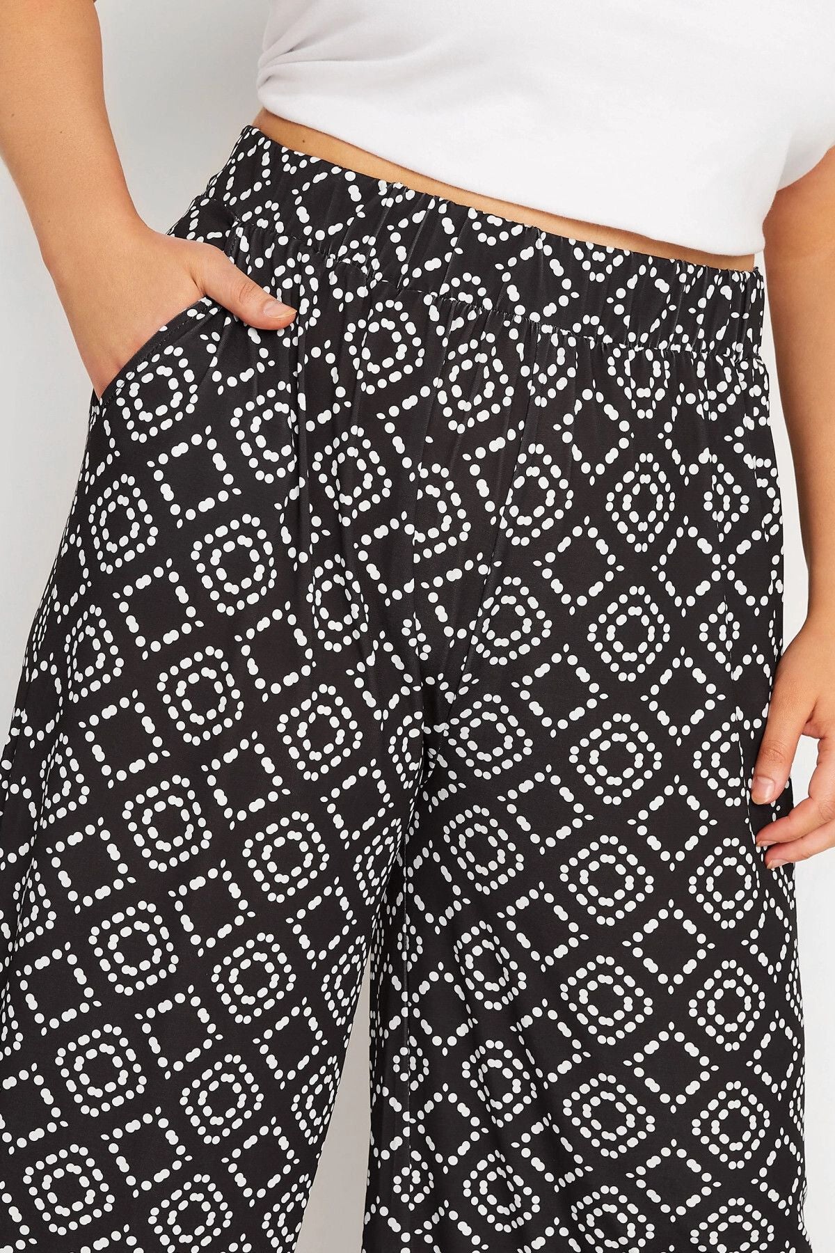 Büyük Beden Beli Lastikli Cepli Desenli Geniş Paça Pantolon 302291