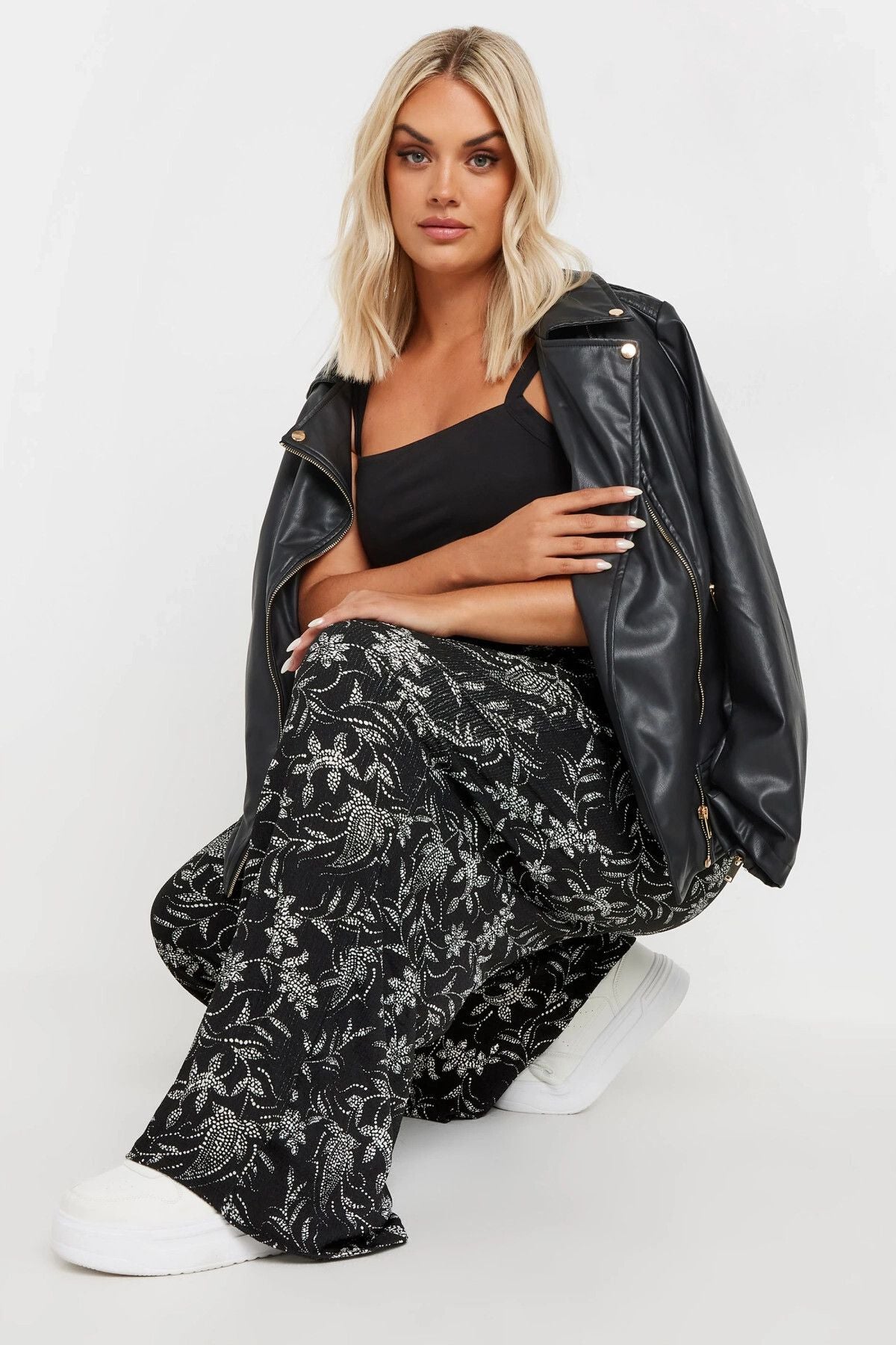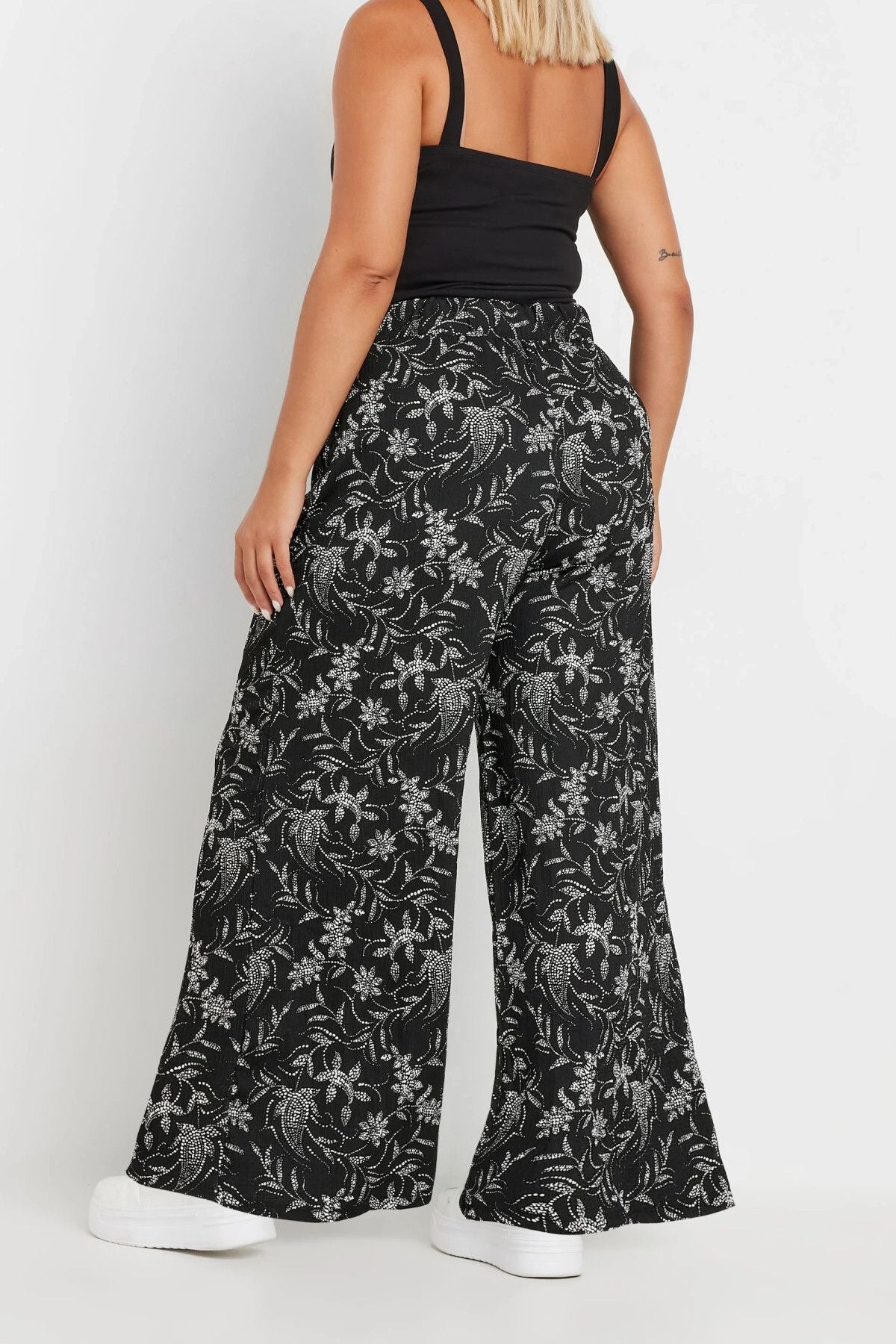 Büyük Beden Beli Lastikli Cepli Desenli Geniş Paça Pantolon 303549