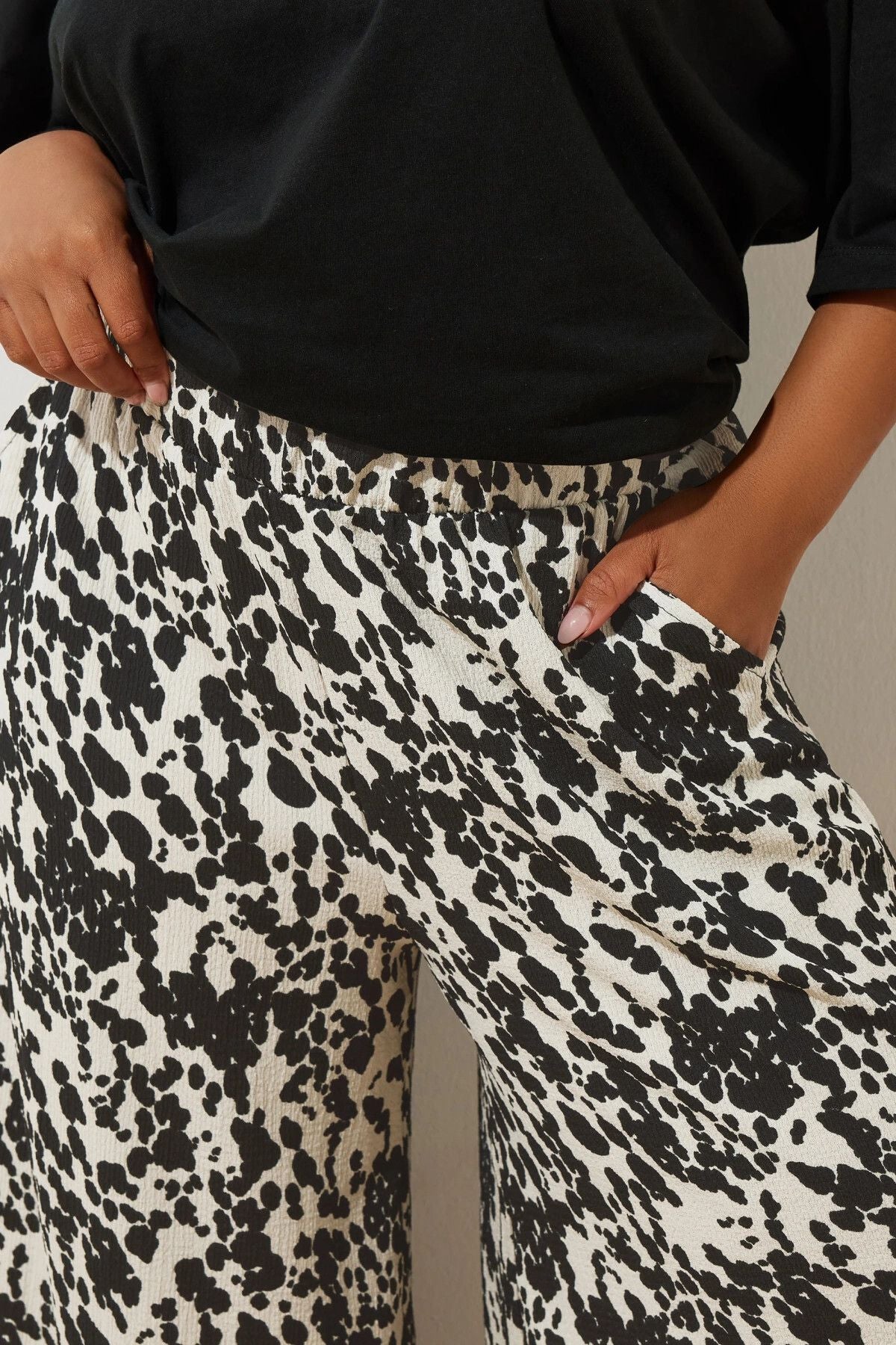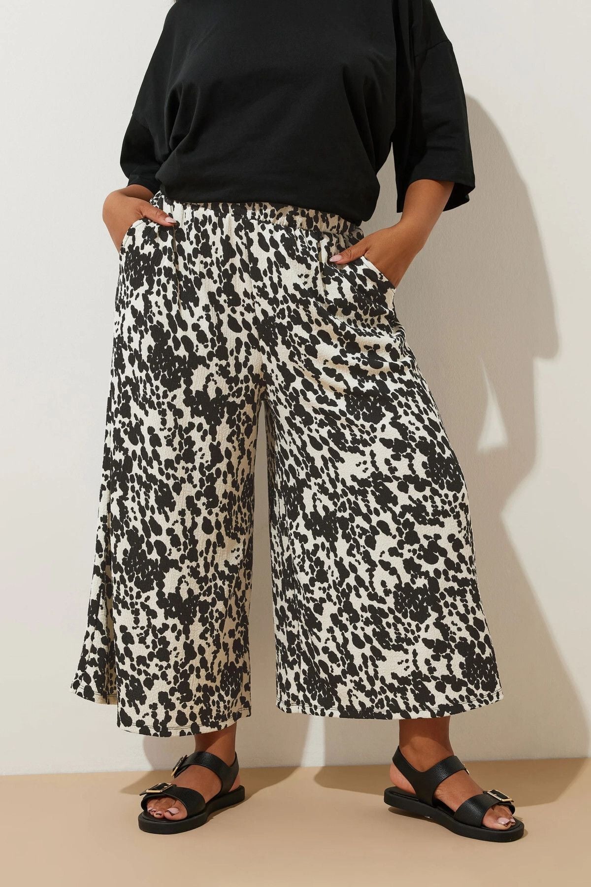 Büyük Beden Beli Lastikli Cepli Desenli Kapri Pantolon 145278
