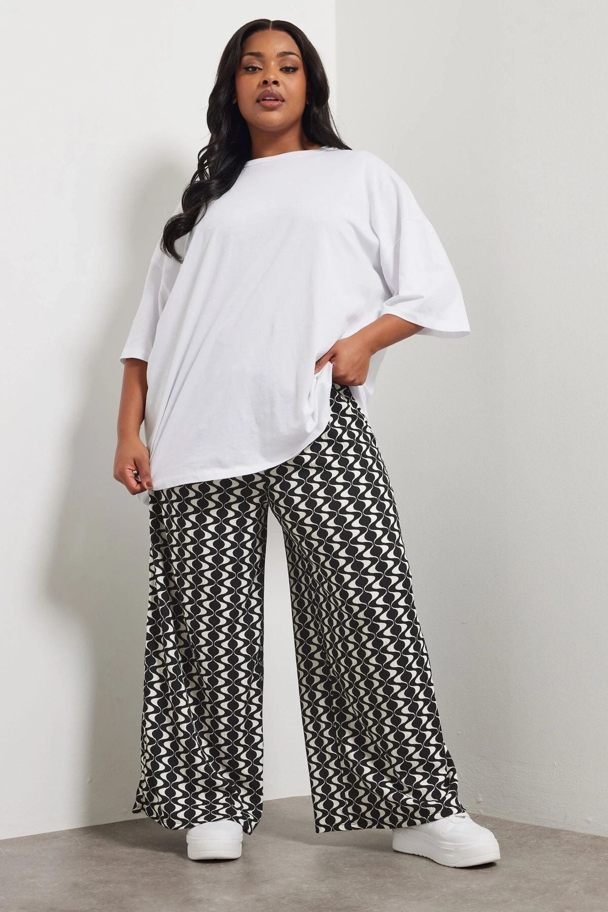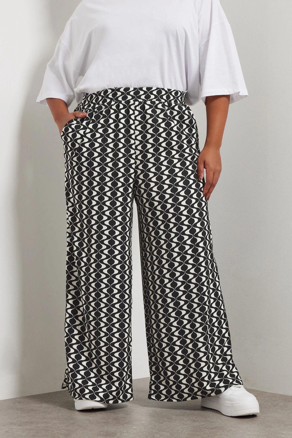 Büyük Beden Beli Lastikli Cepli Dsenli Bol Paça Pantolon 303970