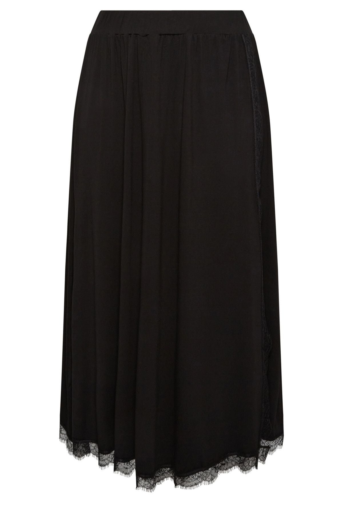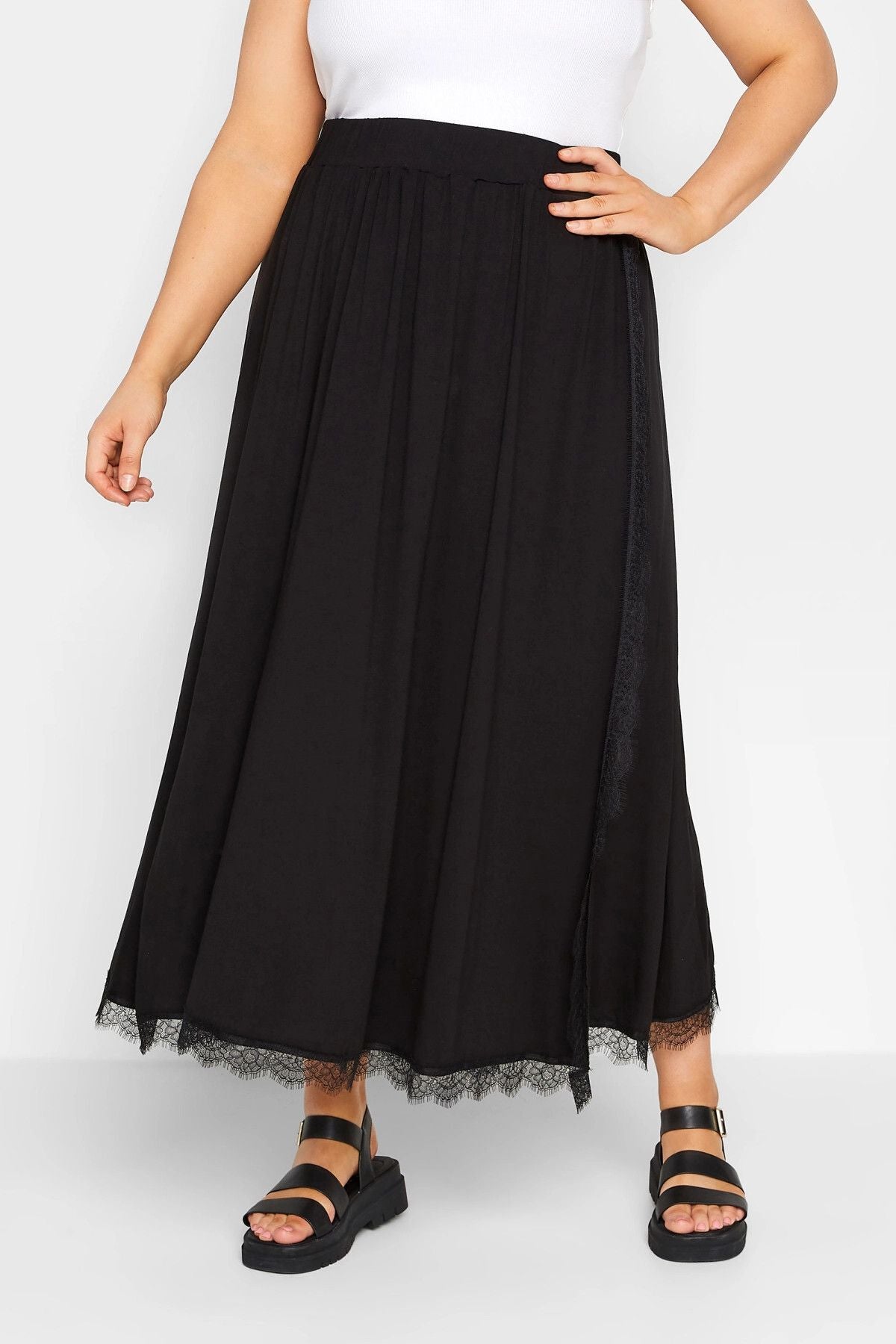 Büyük Beden Beli Lastikli Cepsiz Dantel Detaylı Uzun Etek 215519