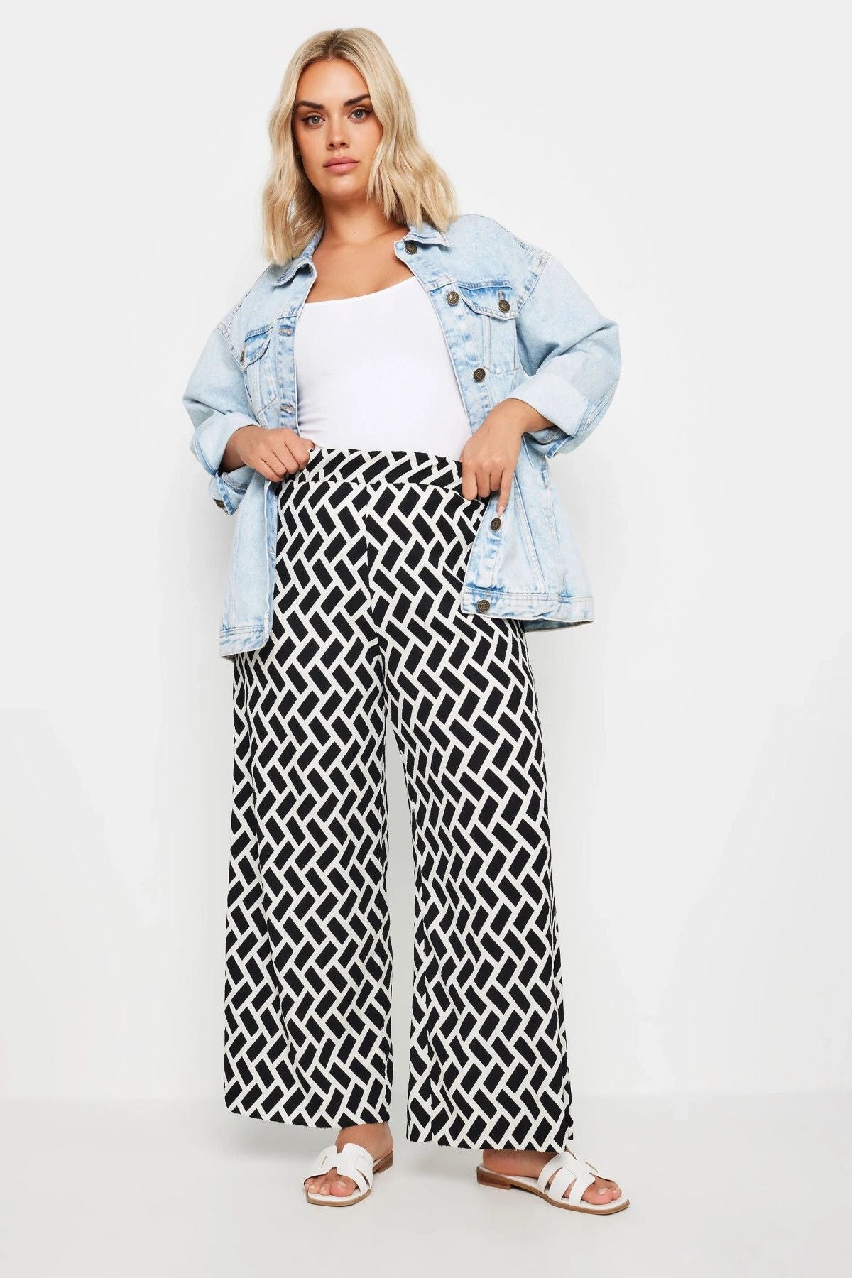 Büyük Beden Beli Lastikli Cepsiz Geniş Paça Pantolon 303315