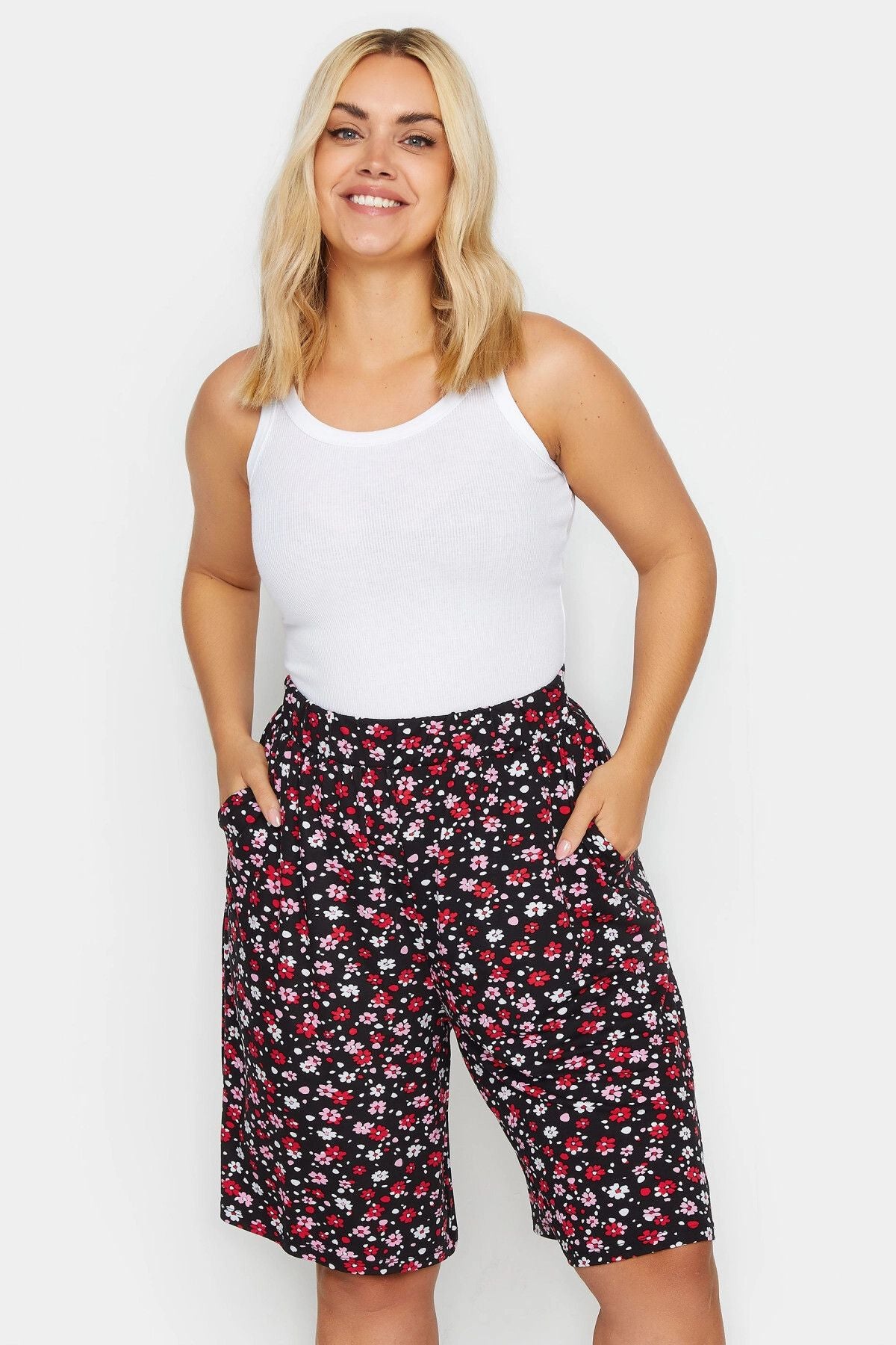 Büyük Beden Beli Lastikli Desenli Bol Kesim Likralı Şort 145049