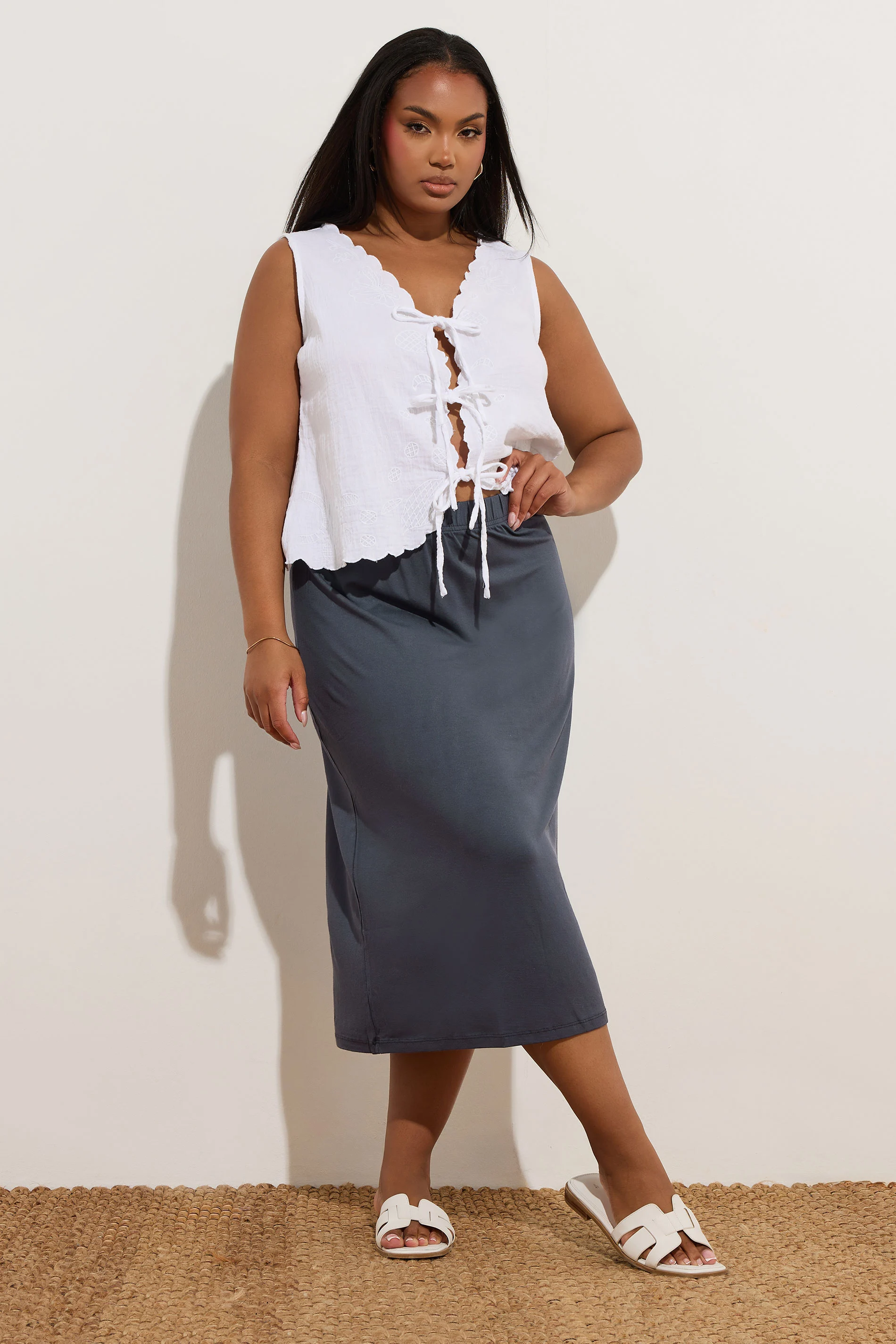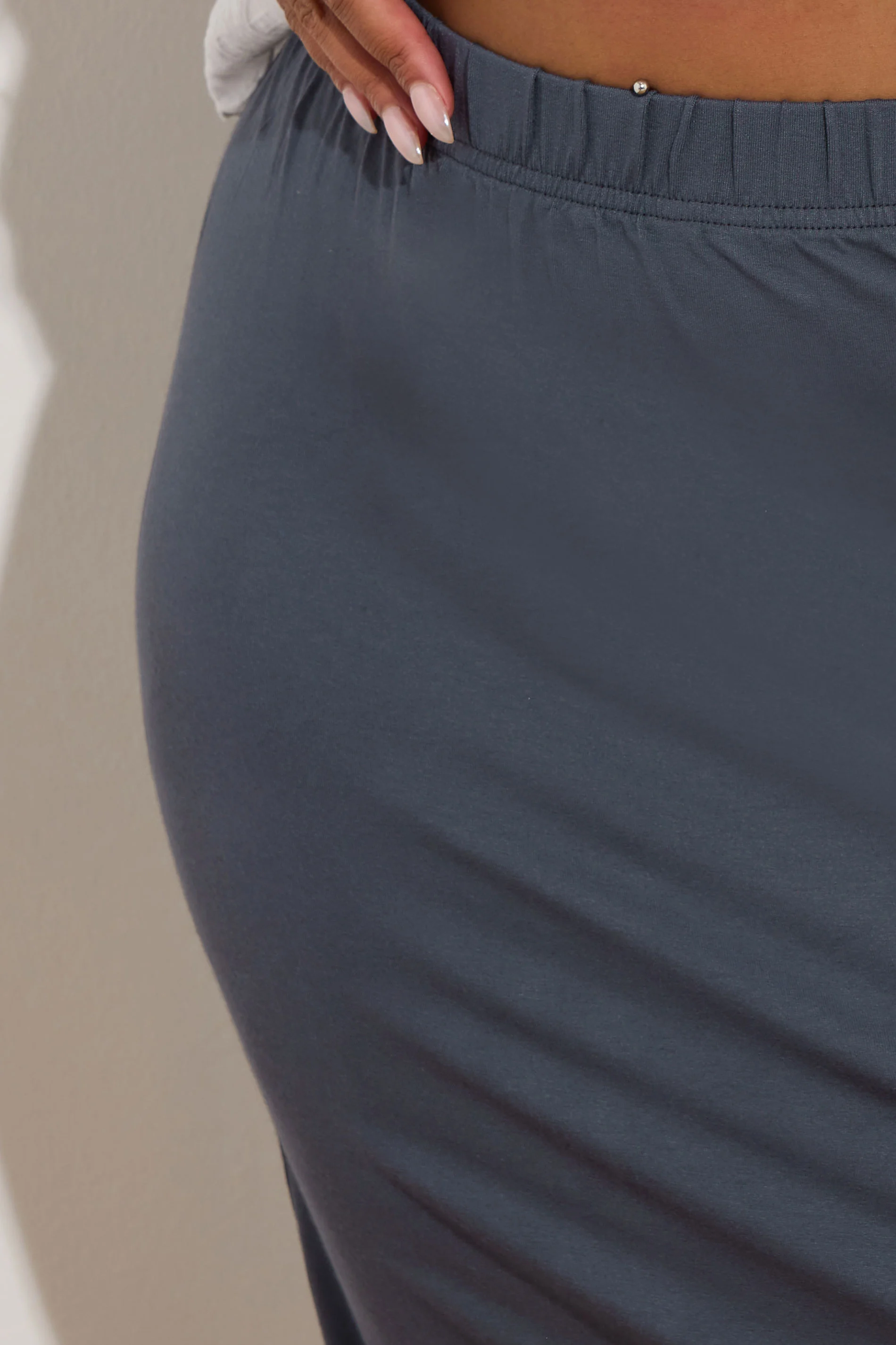 Büyük Beden Beli Lastikli Rahat Kalıp Midi Boy Etek 160301