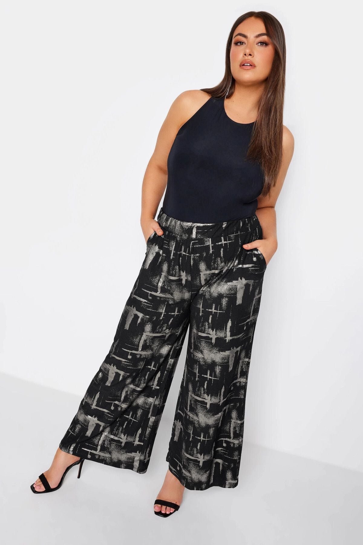 Büyük Beden Beli Lastikli Soyut Desenli Cepli Geniş Paça Pantolon 302576