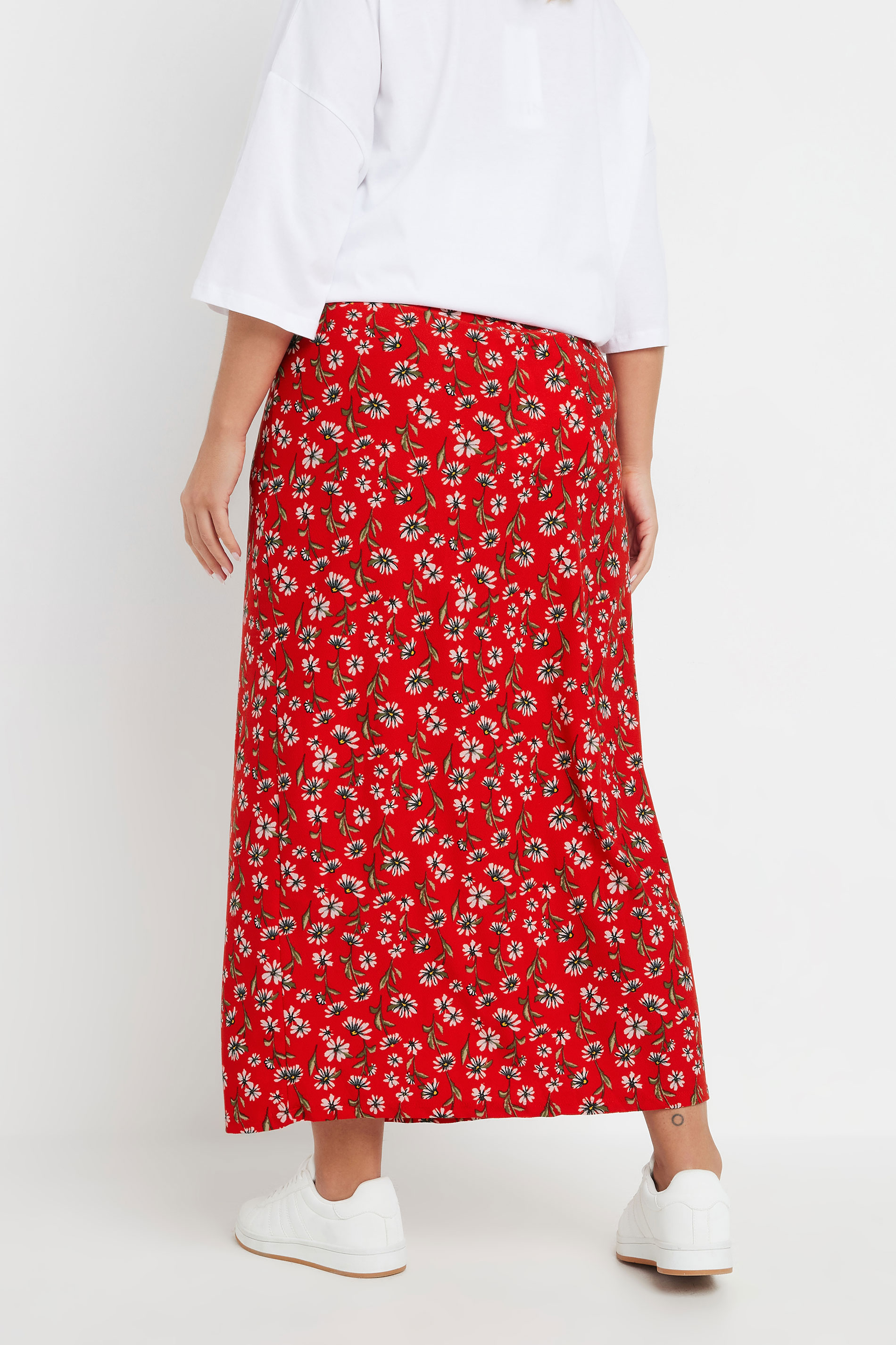 Büyük Beden Beli Lastikli Uzun Kesim Çiçek Desenli Cepsiz Etek 303898