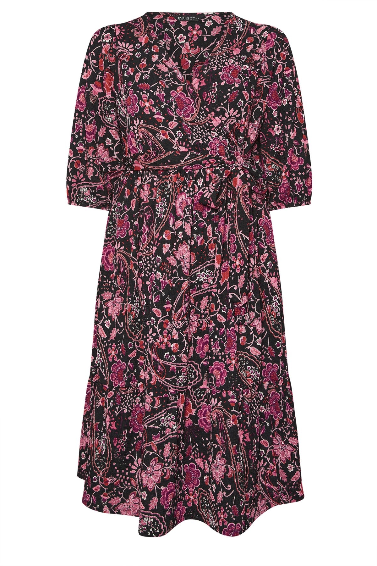 Büyük Beden Beli Lastikli V Yaka Desenli Uzun Anvelop Elbise 616311
