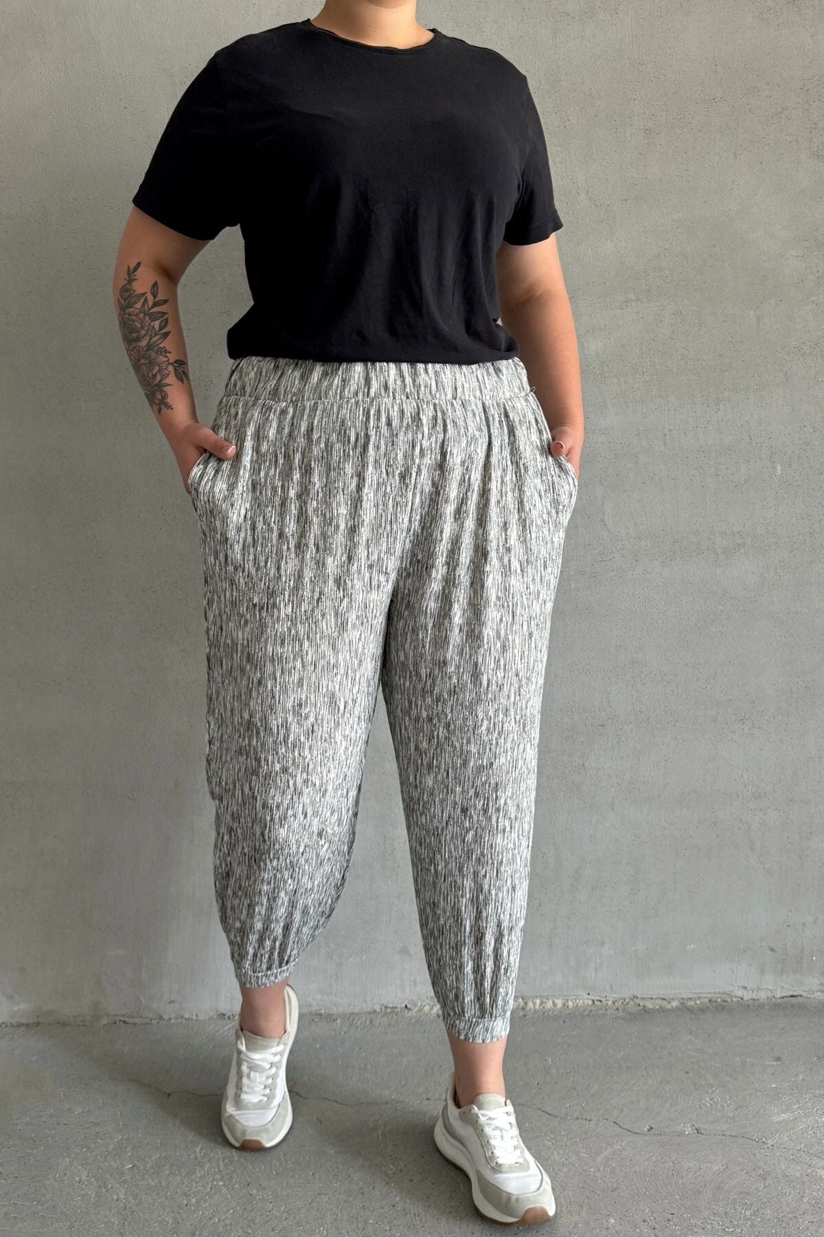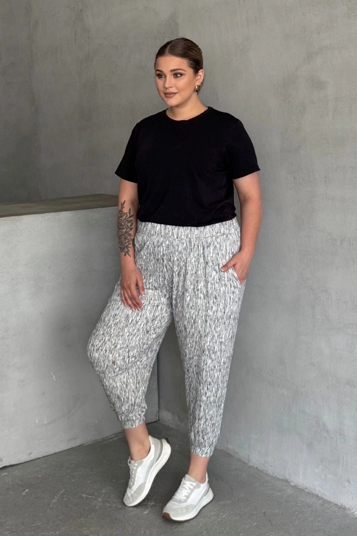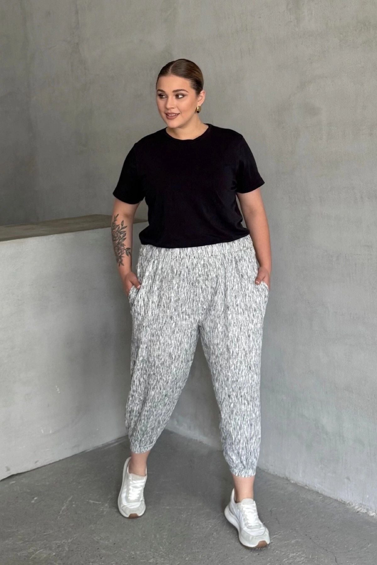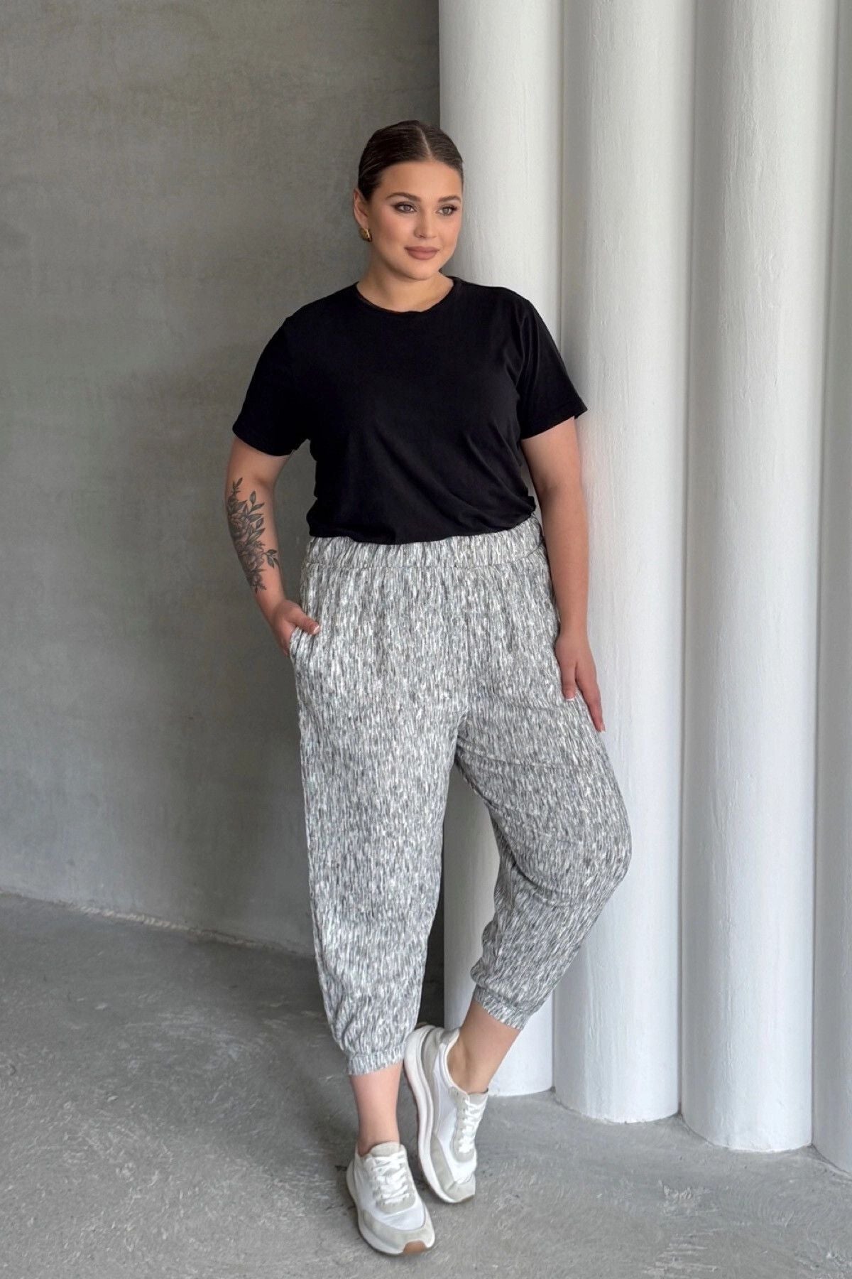 Büyük Beden Beli ve Paçası Lastikli Cepli Bol Pantolon 88-177