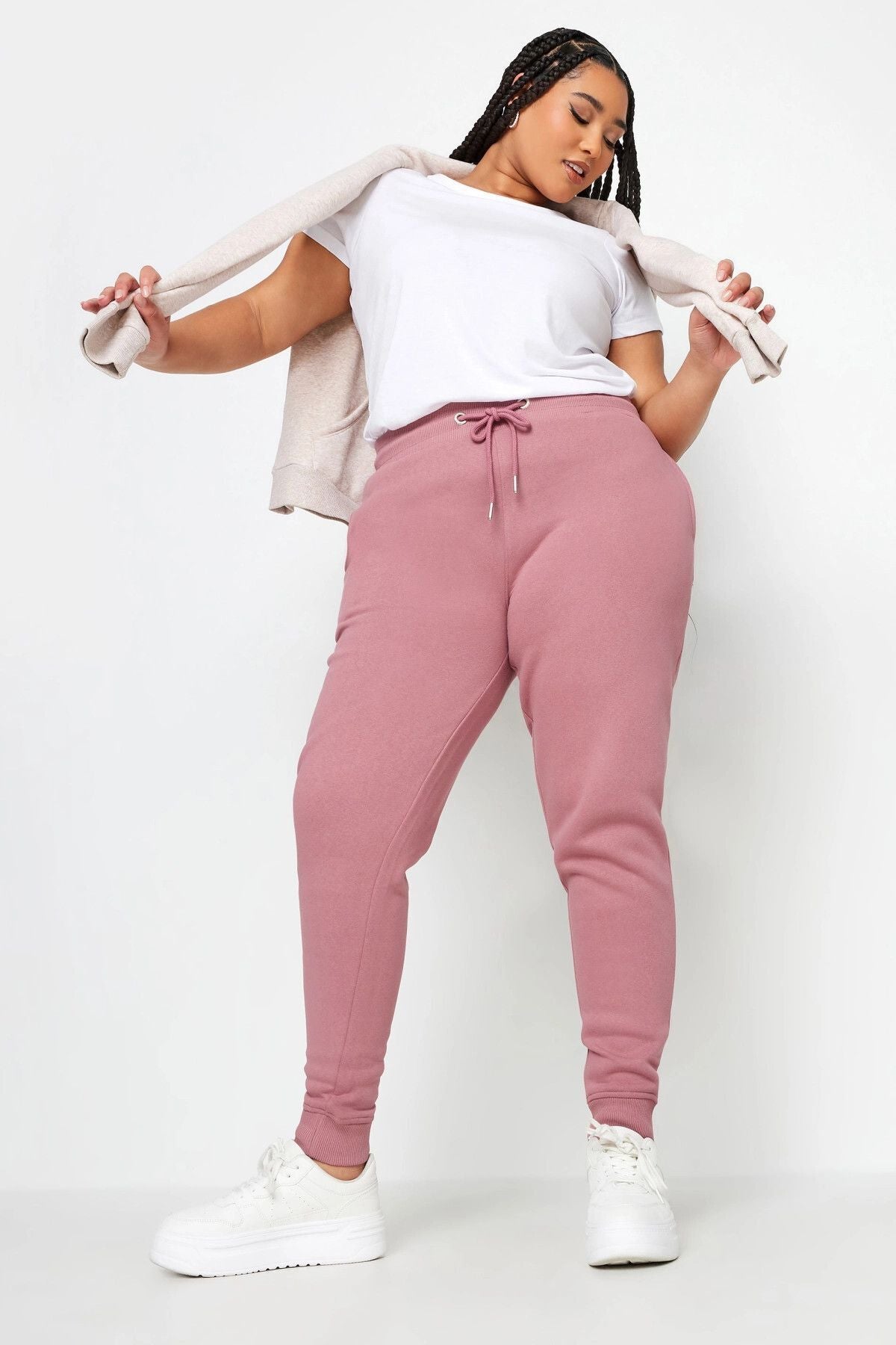 Büyük Beden Beli Ve Paçası Lastikli Dar Paça Cepli Jogger Eşofman Altı 302756