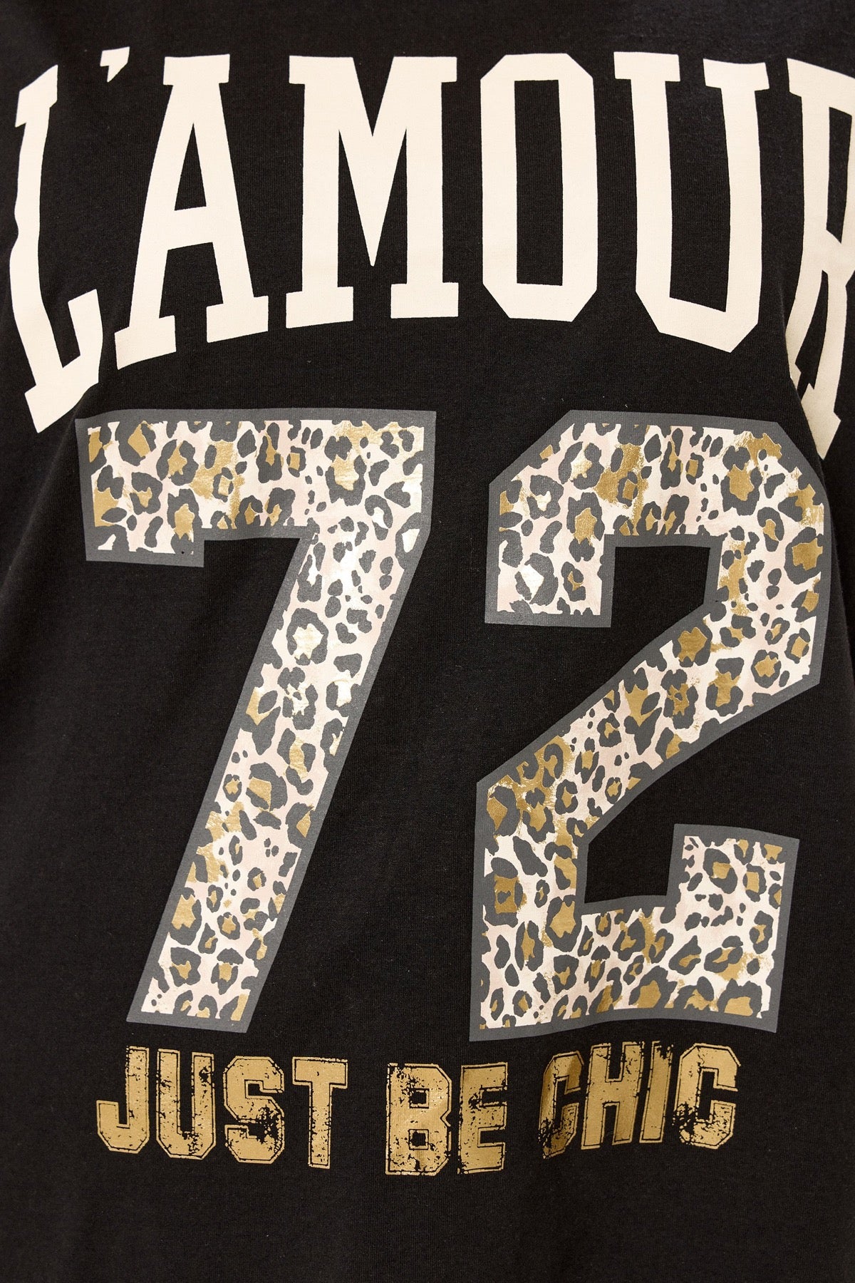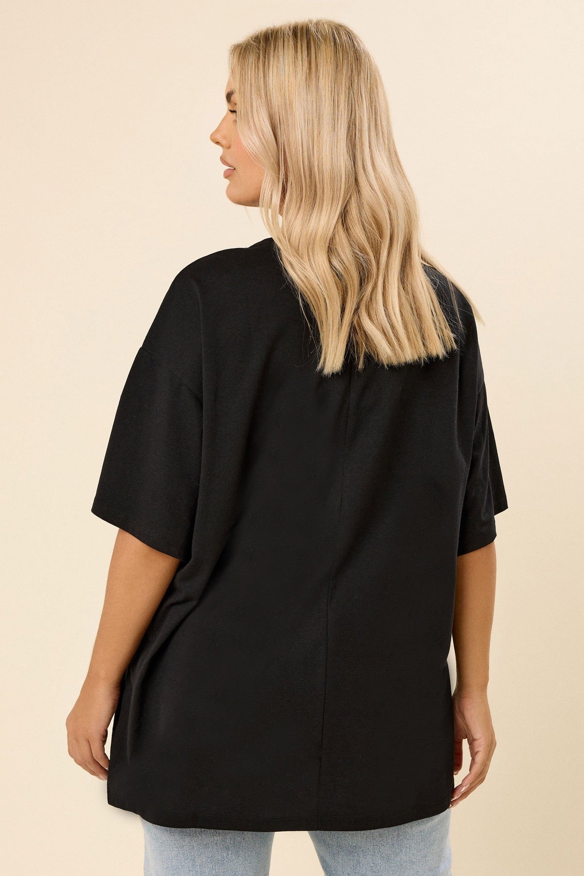 Büyük Beden Bisiket Yaka Kısa Kollu Yazı Baskılı T-shirt 304287