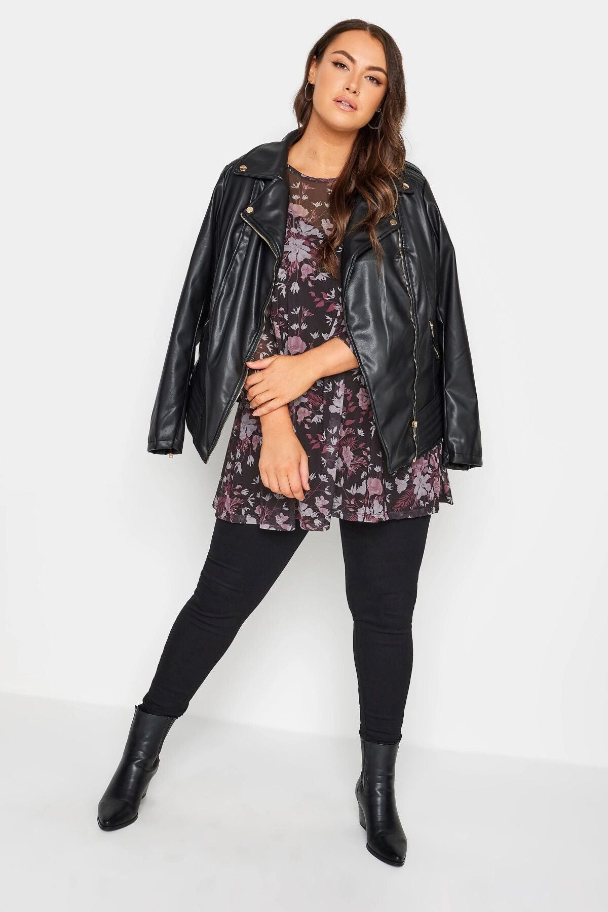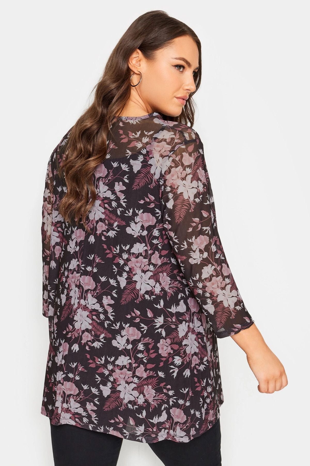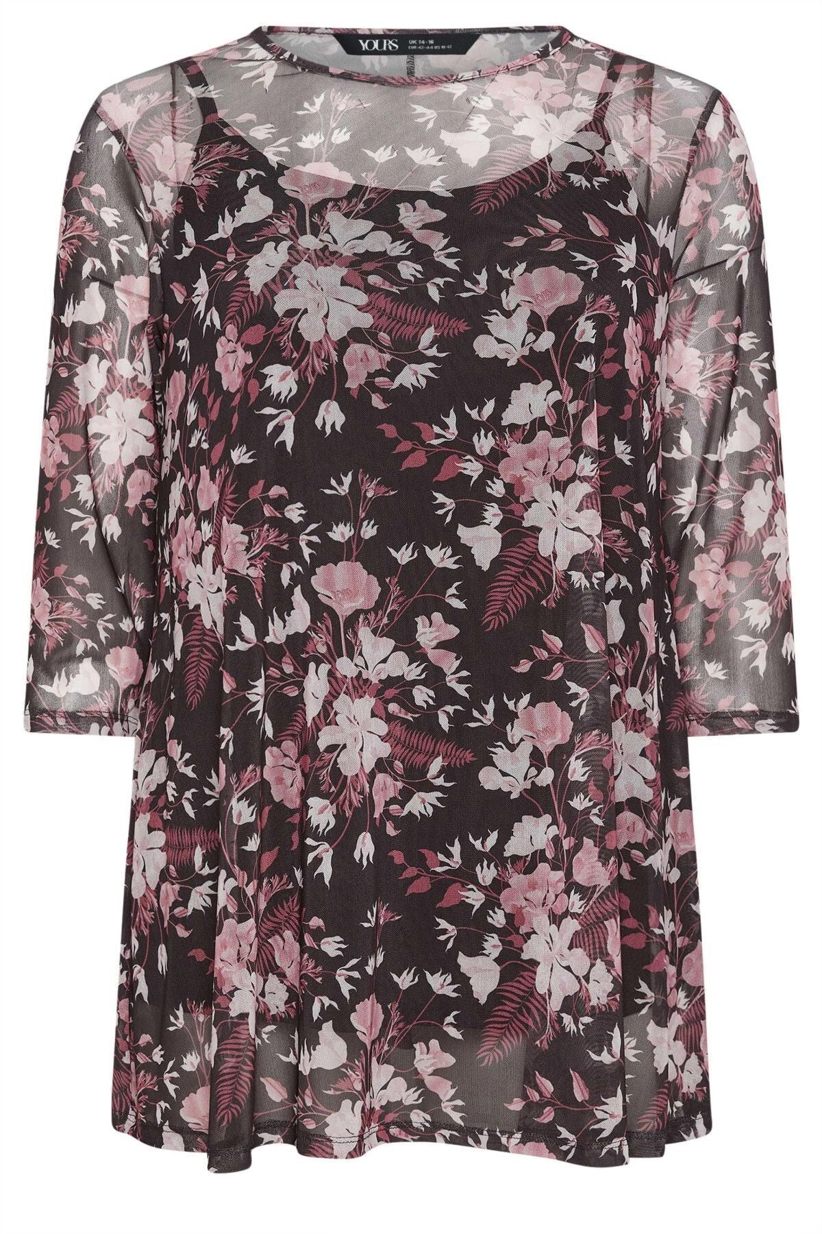 Büyük Beden Bisiklet Yaka Çiçek Desenli Uzun Kollu Tül Bluz 302700