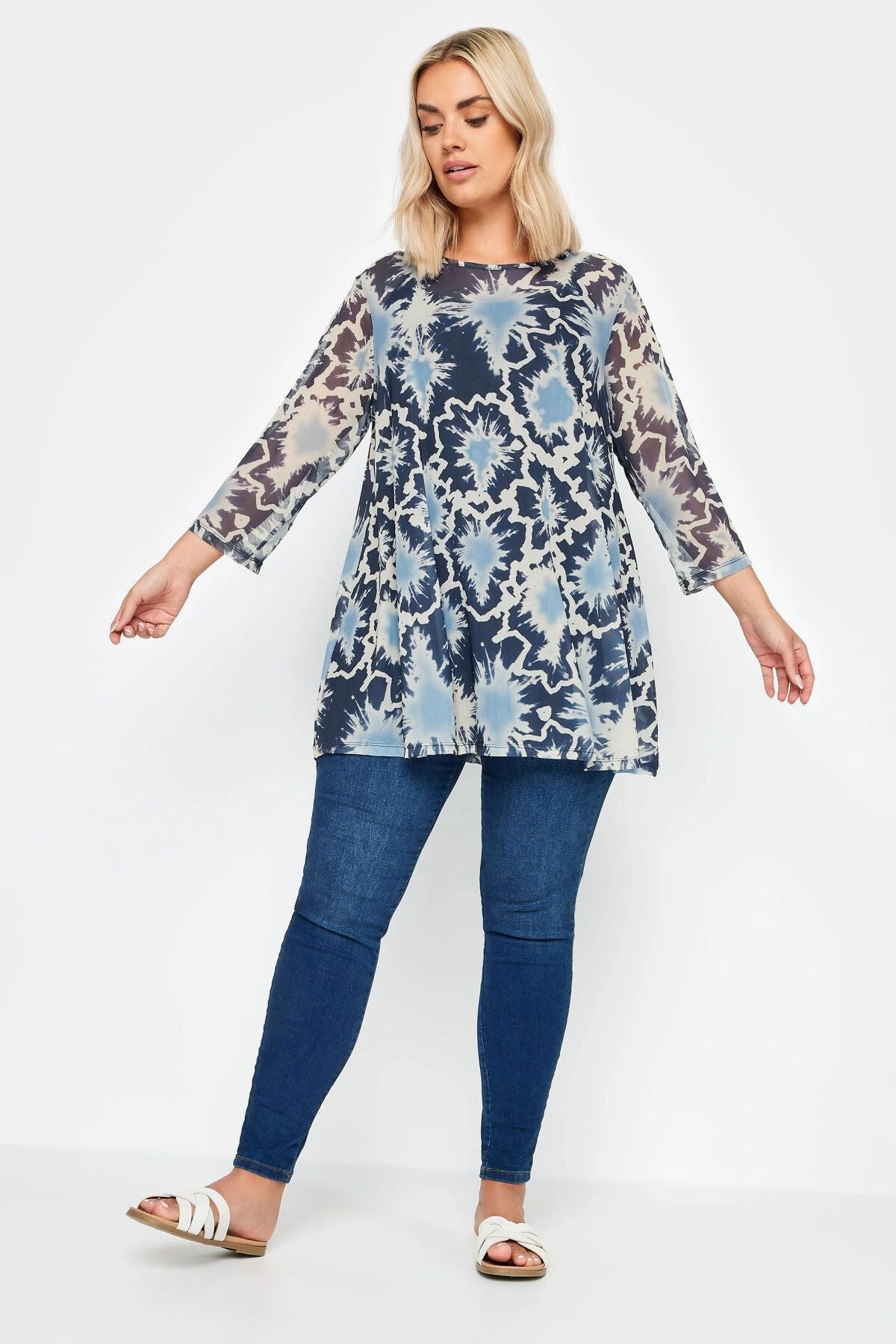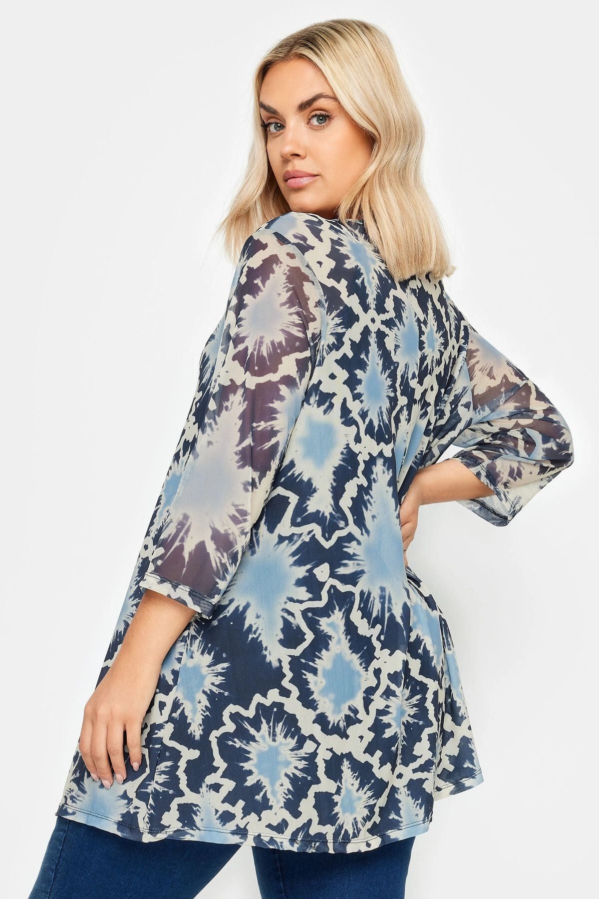 Büyük Beden Bisiklet Yaka Çiçek Desenli Uzun Kollu Tül Bluz 302703