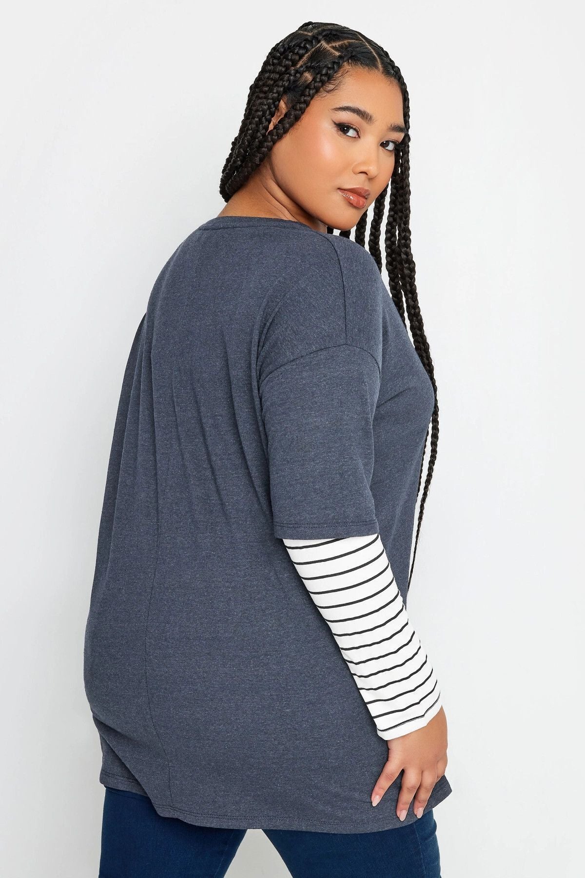 Büyük Beden Bisiklet Yaka Çift Katlı Kolları Çizgili T-shirt 302777