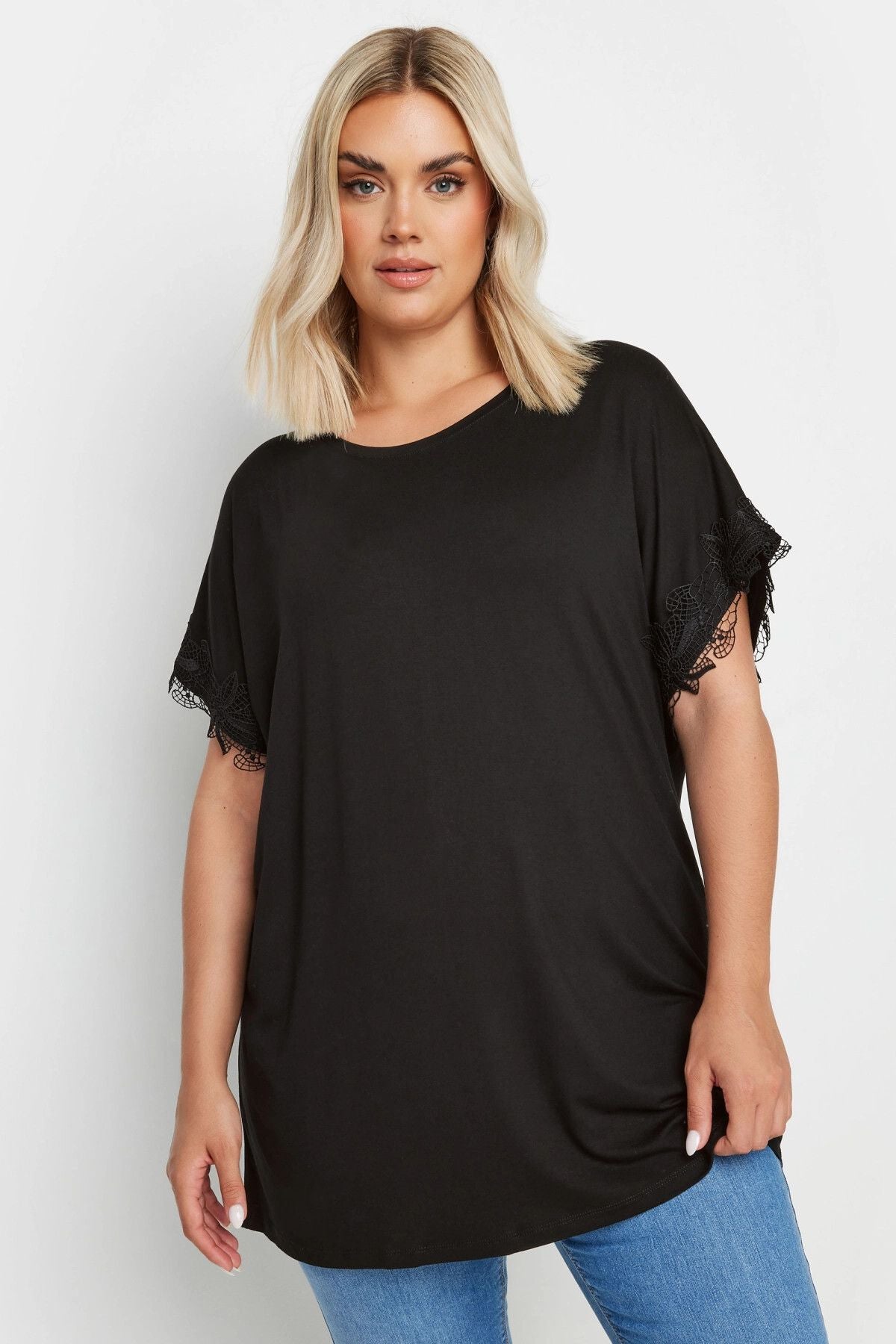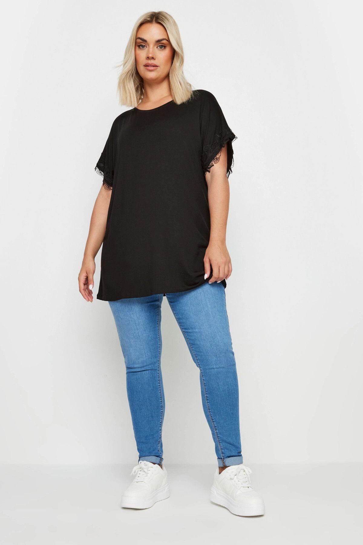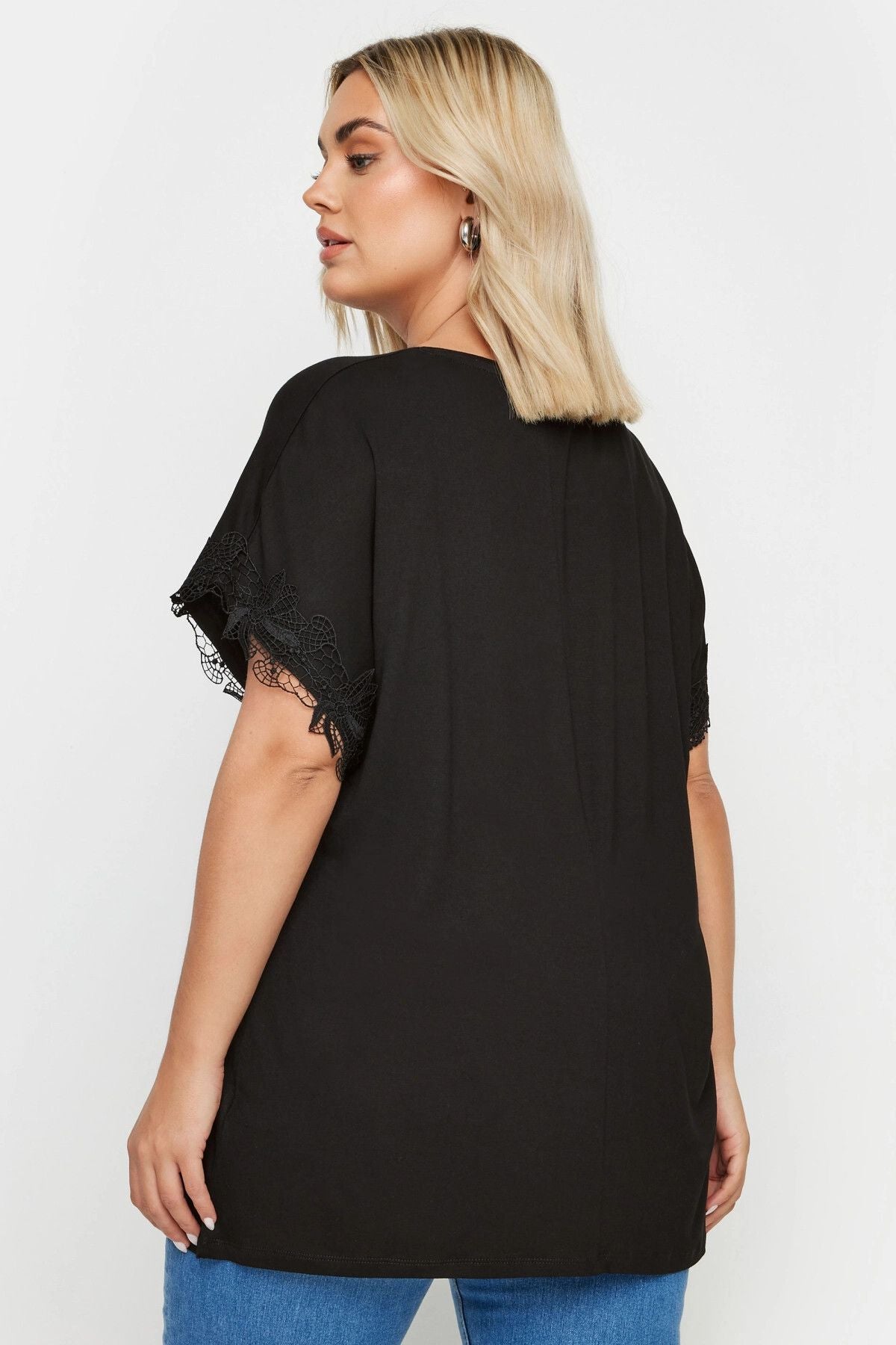 Büyük Beden Bisiklet Yaka Dantel Detaylı Kısa Kollu Bluz 303375