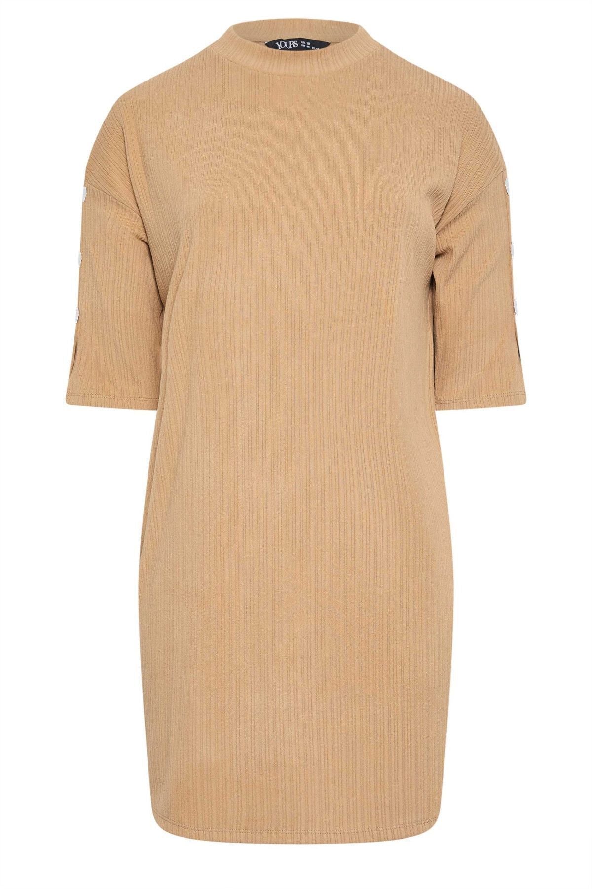 Büyük Beden Bisiklet Yaka Düğme Detaylı Yarım Kollu Mini Elbise 302783