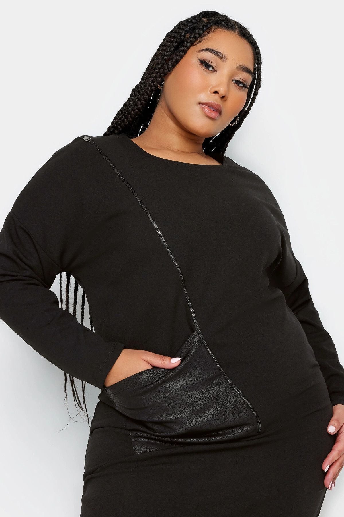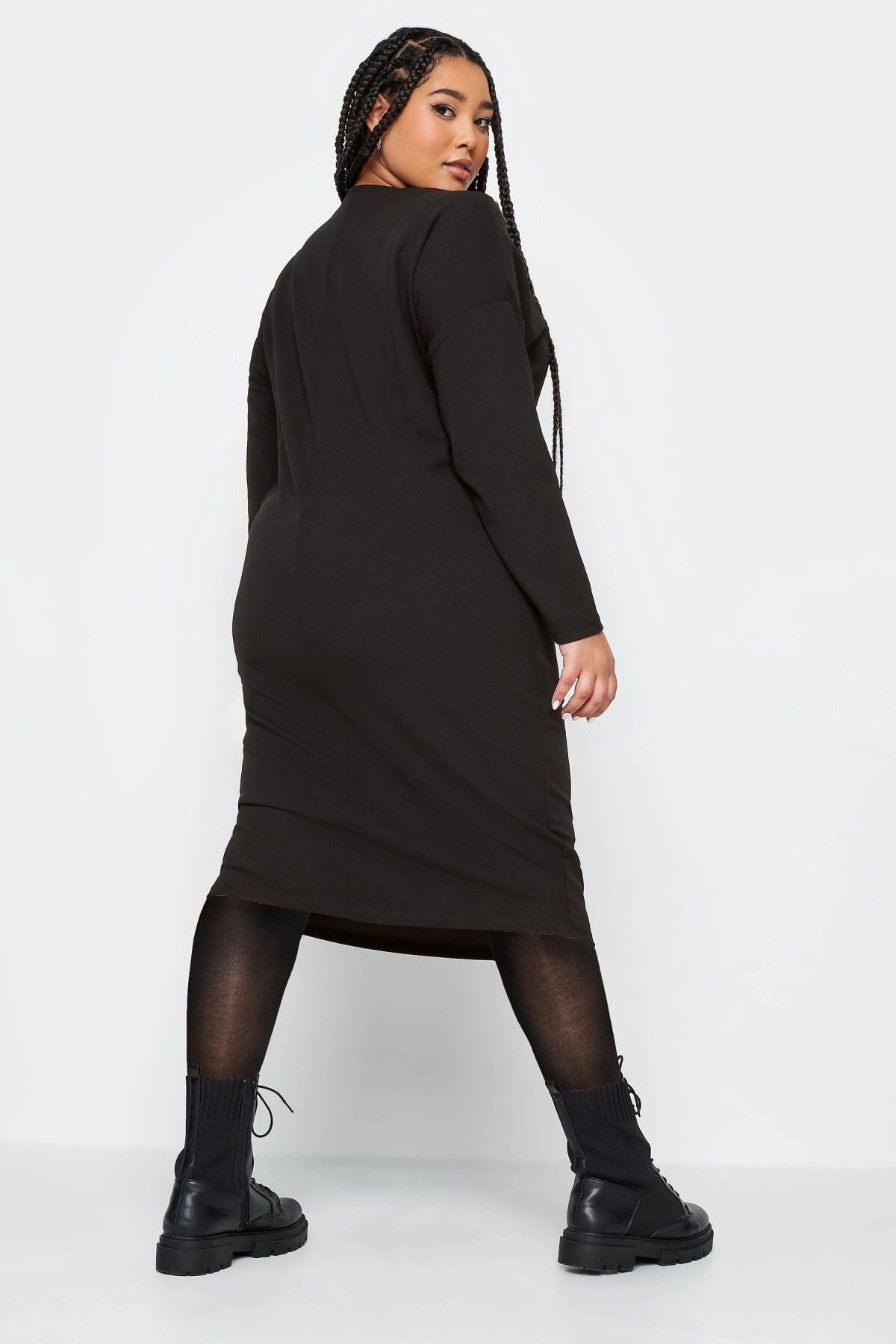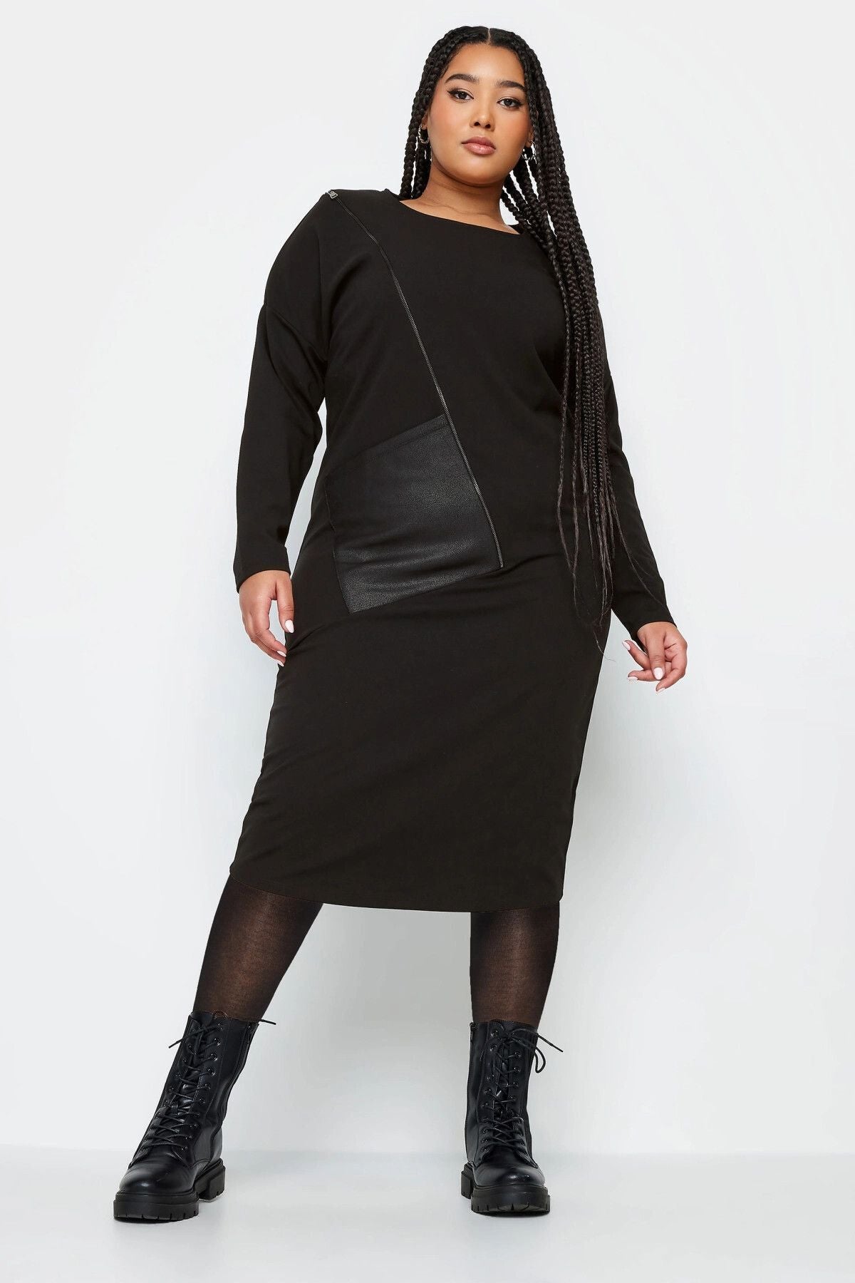 Büyük Beden Bisiklet Yaka Fermuar Detaylı Midi Boy Elbise 302715