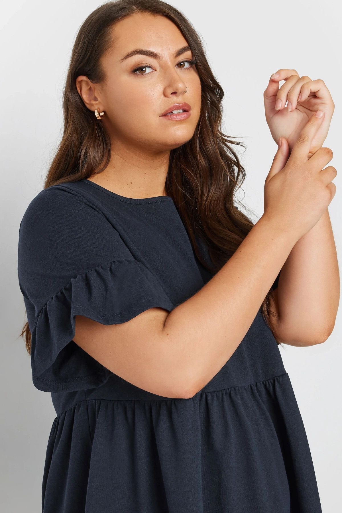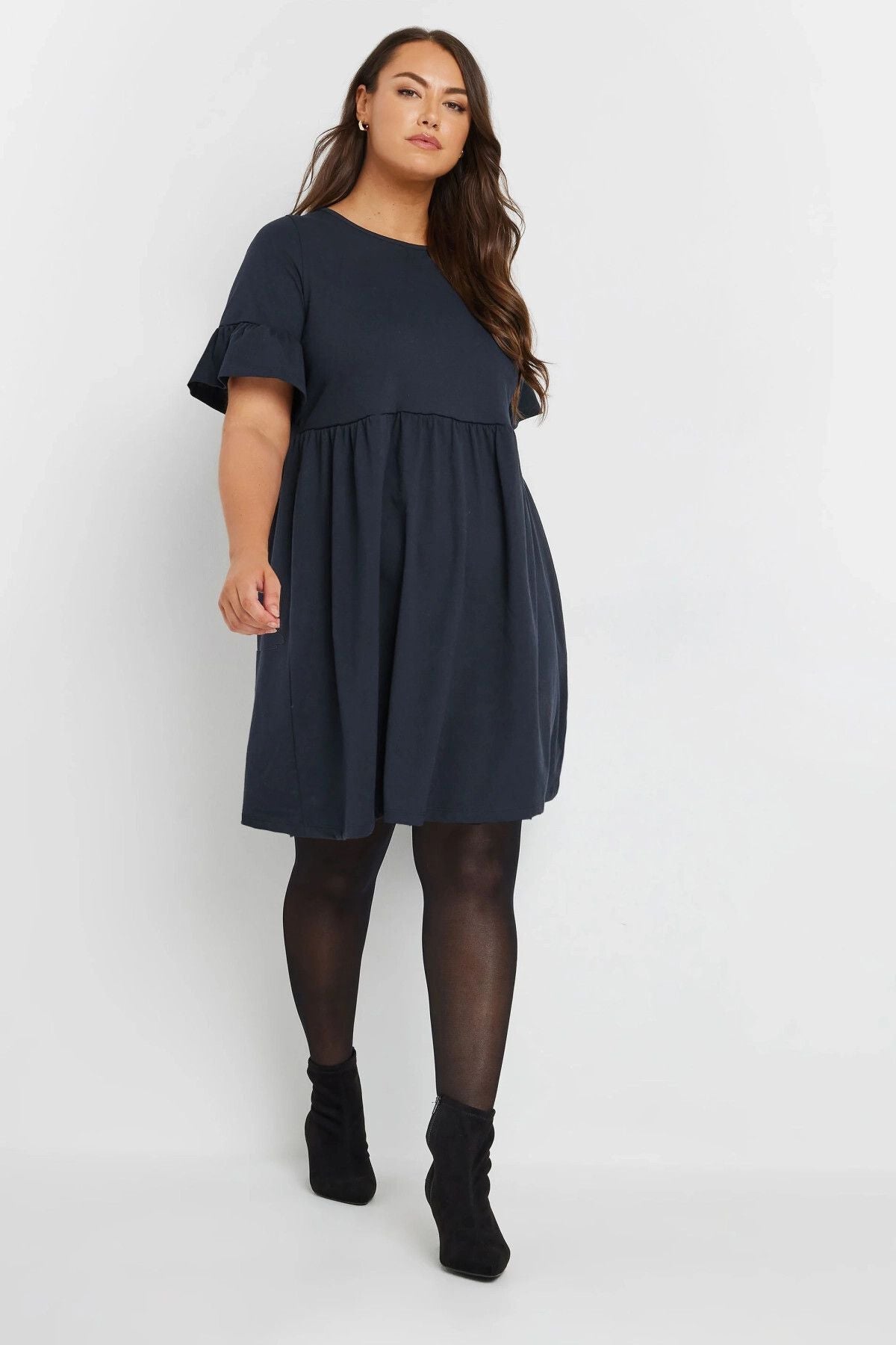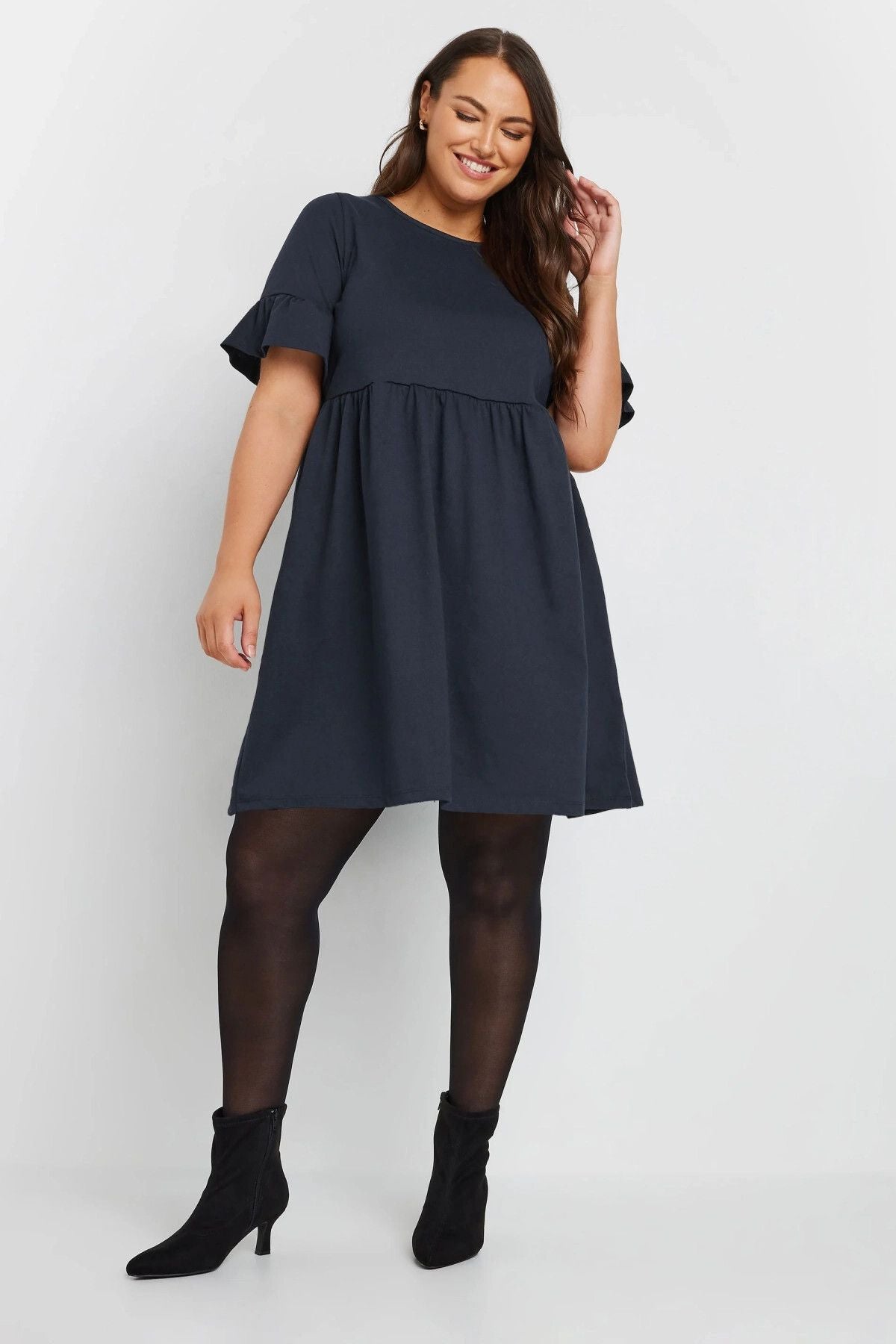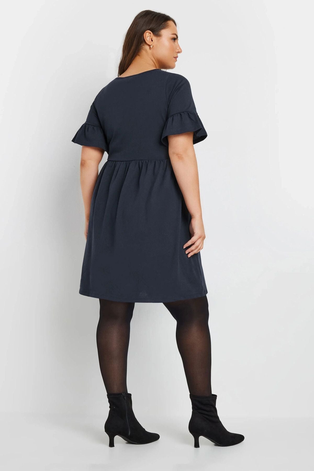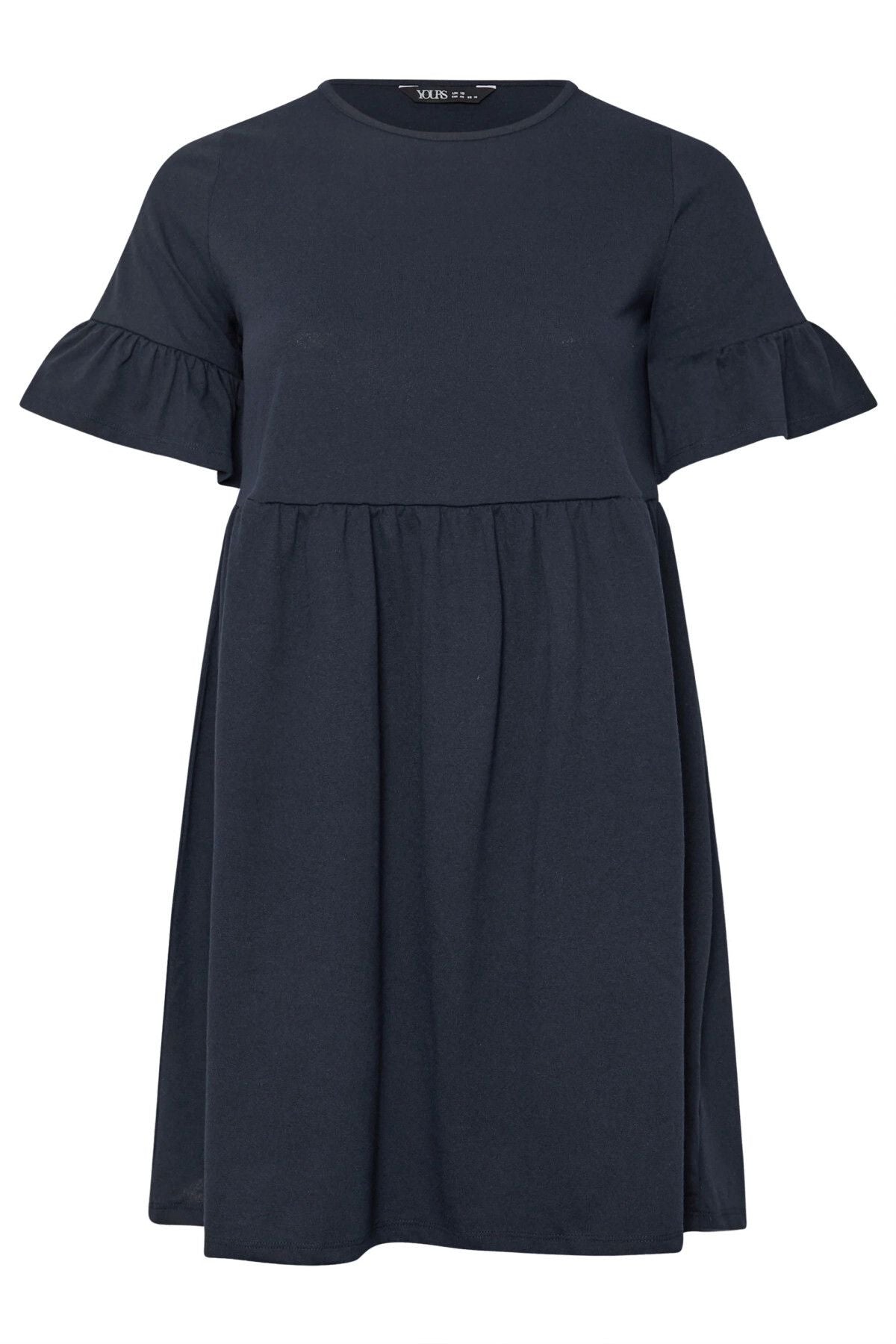 Büyük Beden Bisiklet Yaka Kısa Fırfır Kollu Beli Lastikli Mini Elbise 303646