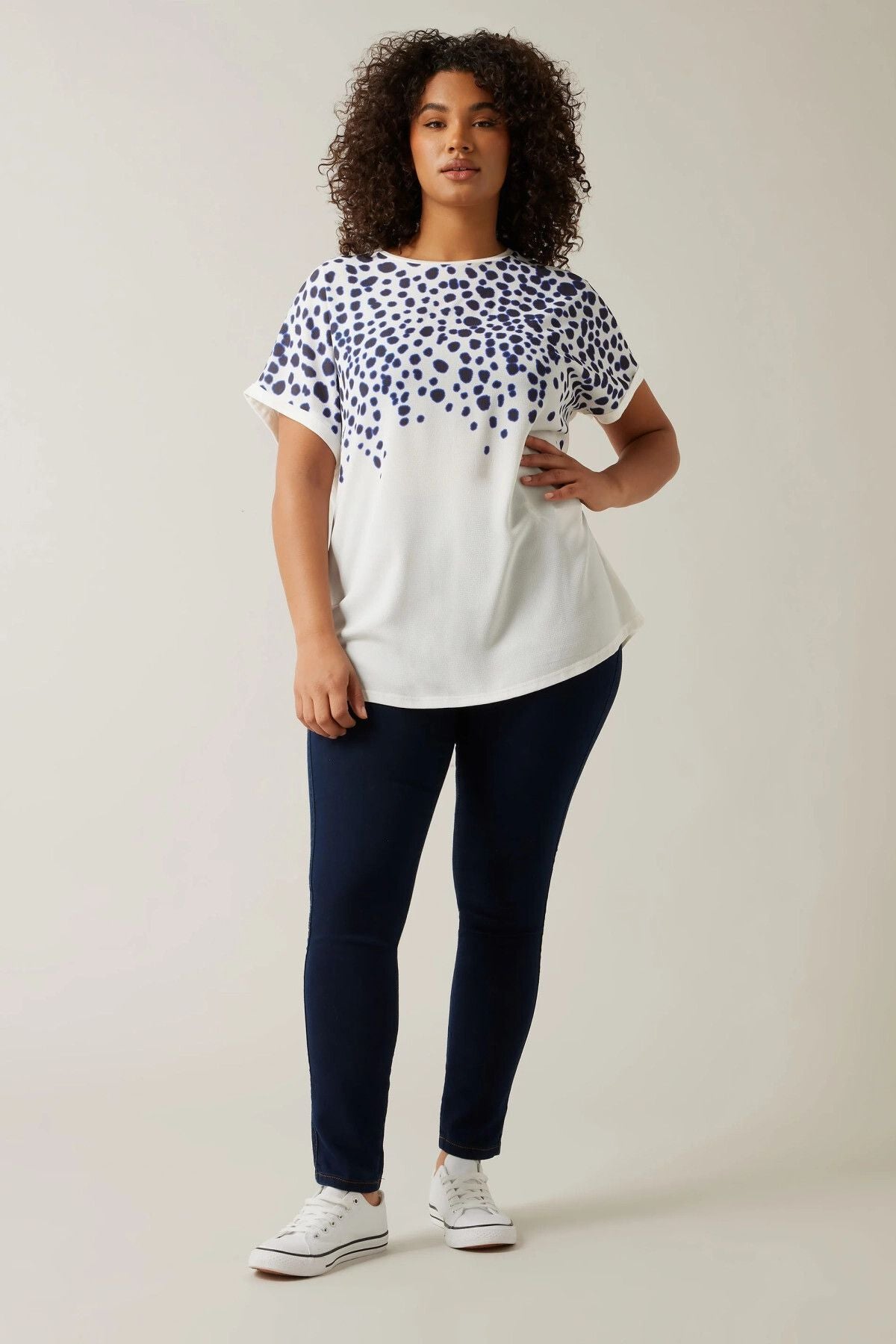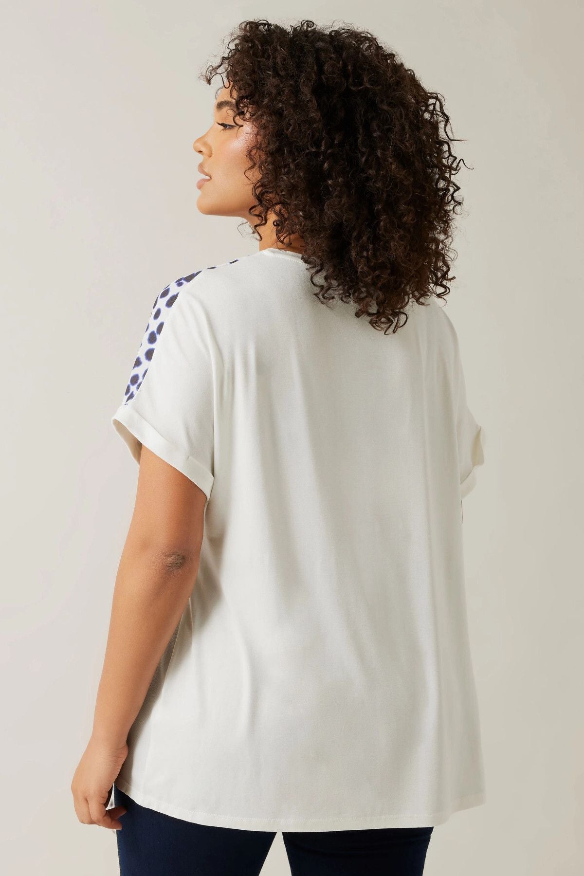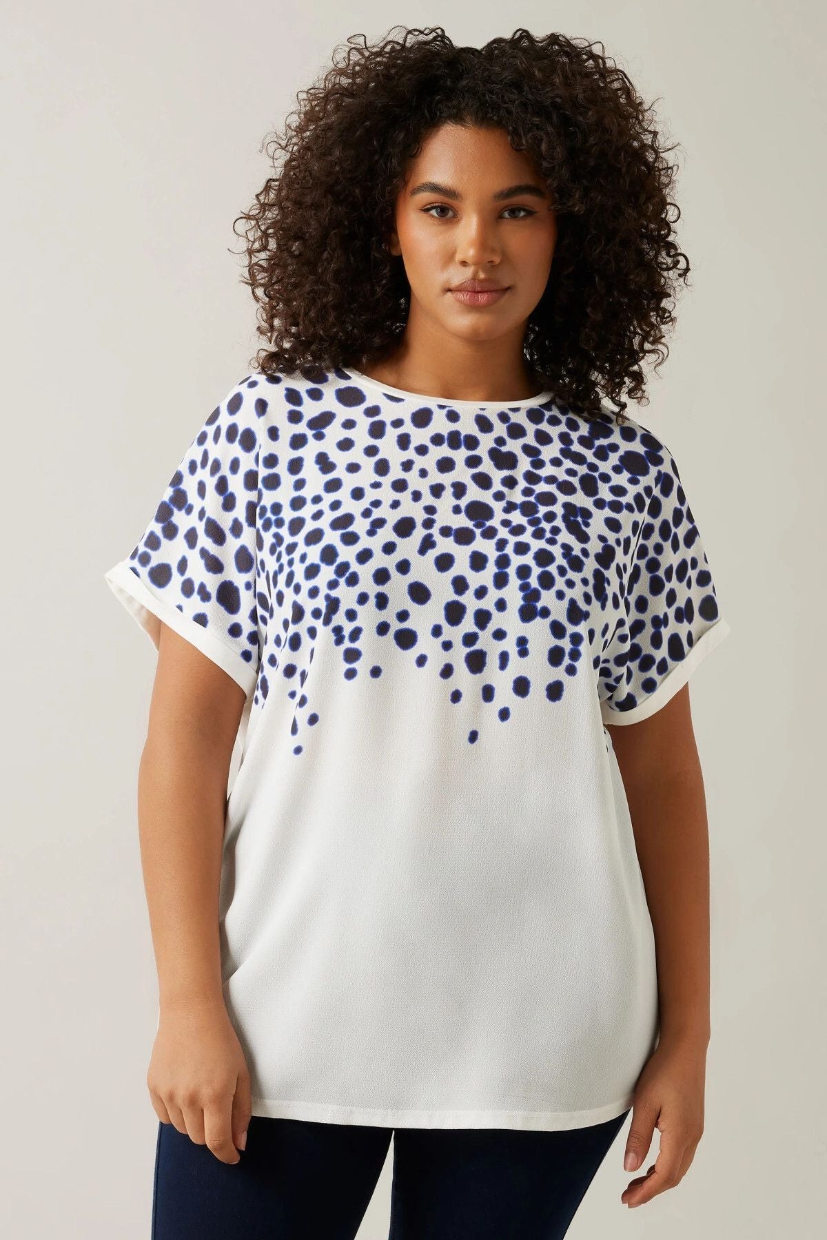 Büyük Beden Bisiklet Yaka Kısa Kollu Çiçek Desenli Bluz 615860