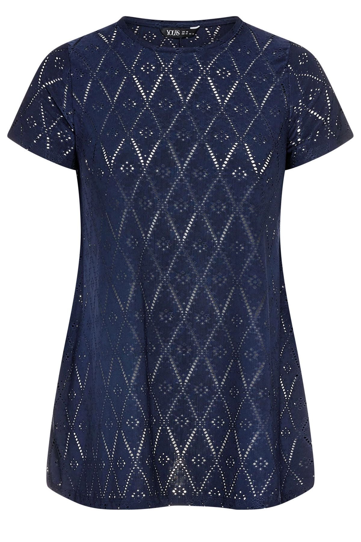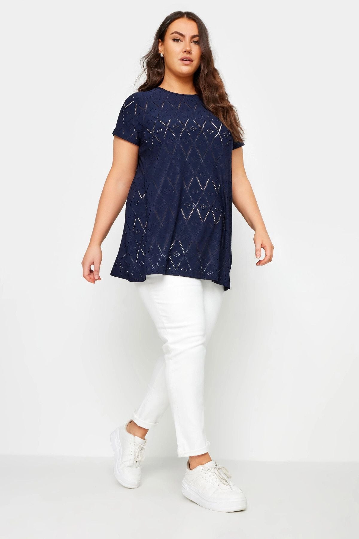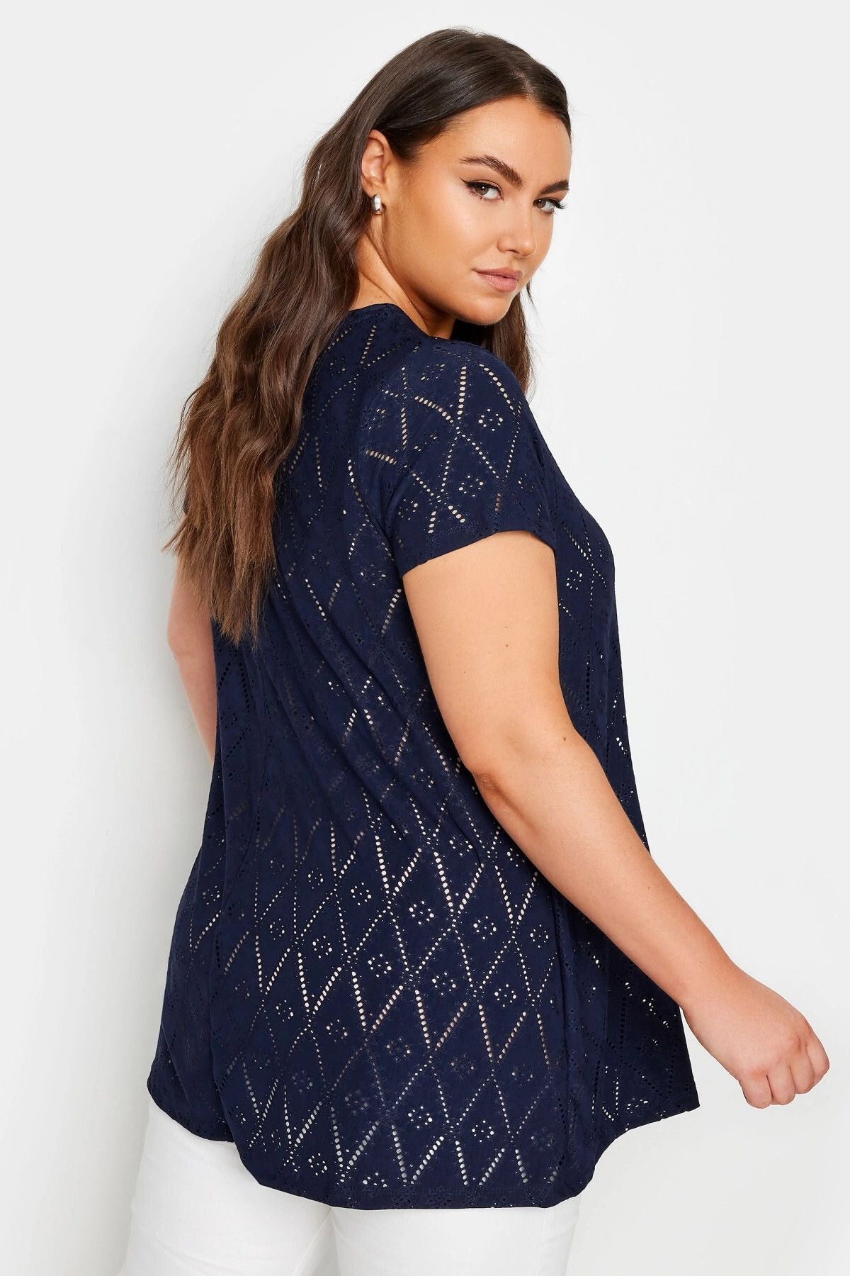 Büyük Beden Bisiklet Yaka Kısa Kollu Dantelli Astarsız Bluz 303264