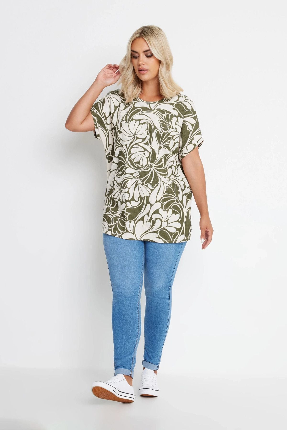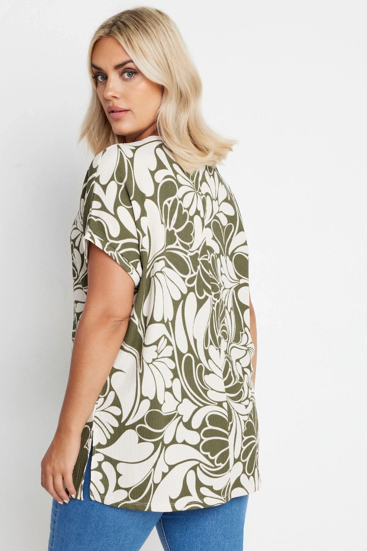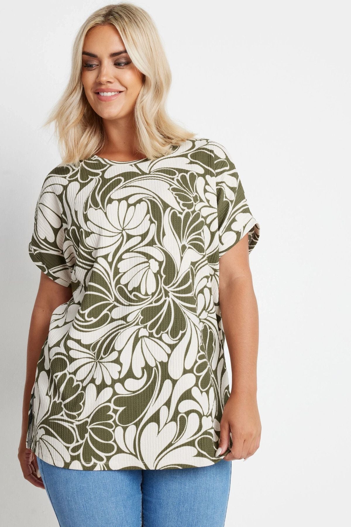 Büyük Beden Bisiklet Yaka Kısa Kollu Desenli Bluz 321994