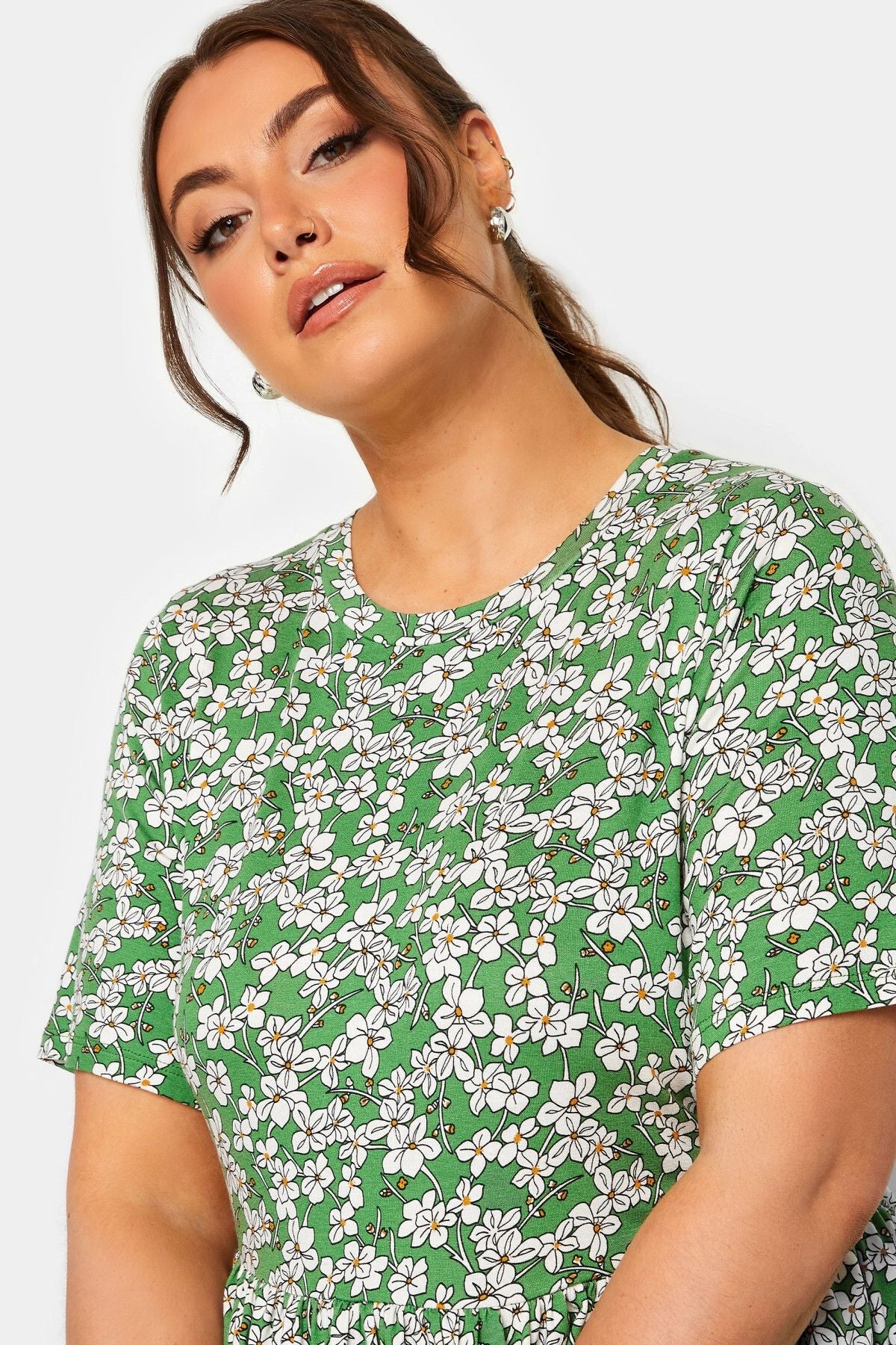 Büyük Beden Bisiklet Yaka Kısa Kollu Desenli Midi Boy Elbise 302229