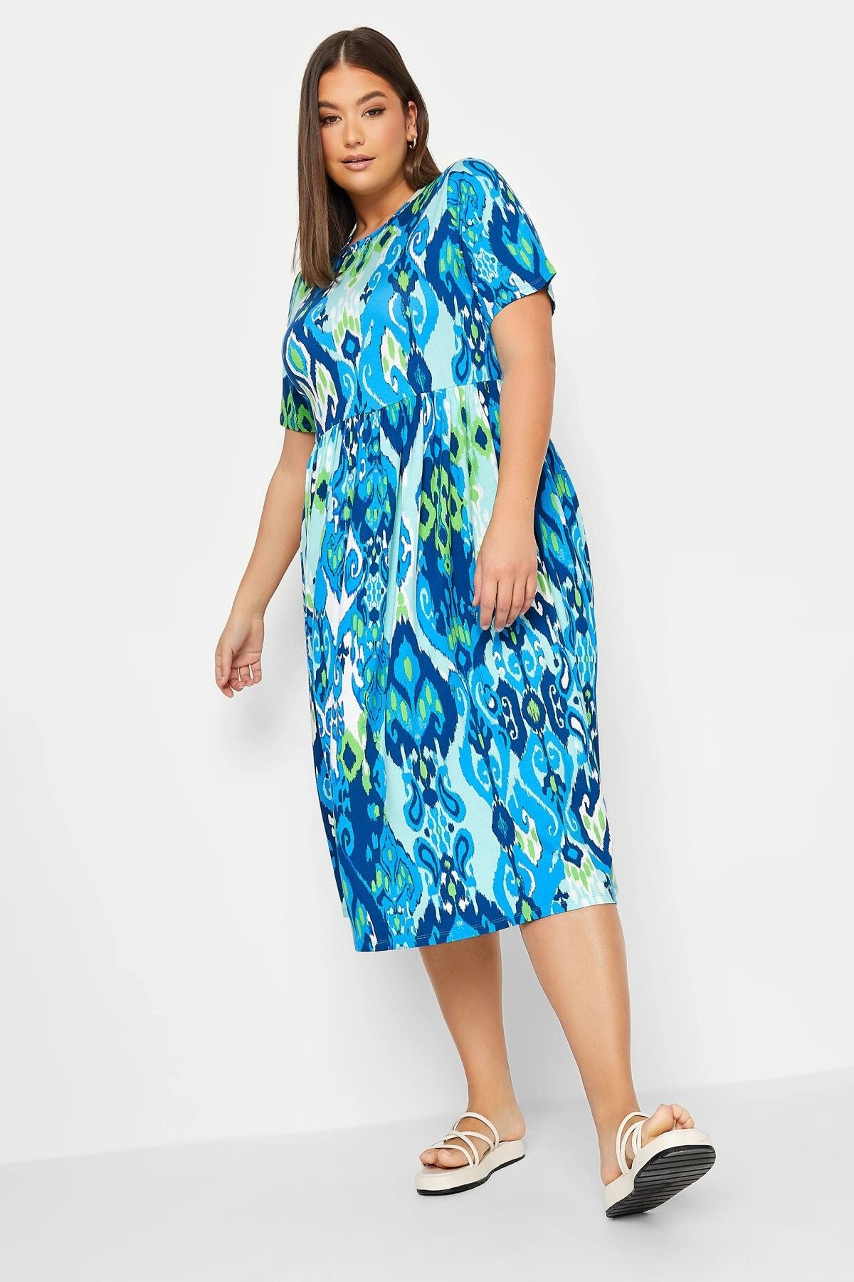 Büyük Beden Bisiklet Yaka Kısa Kollu Desenli Midi Boy Elbise 302233