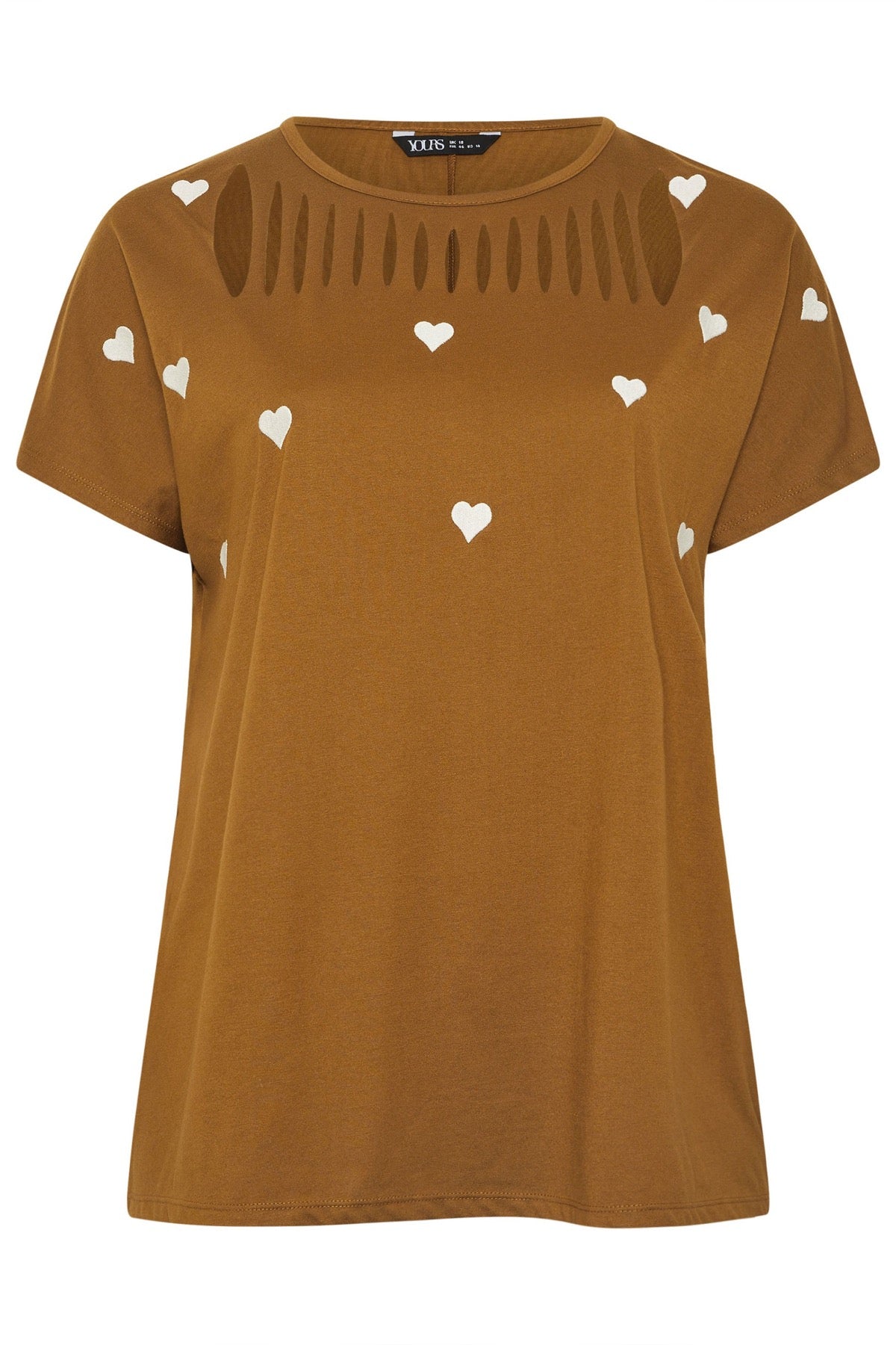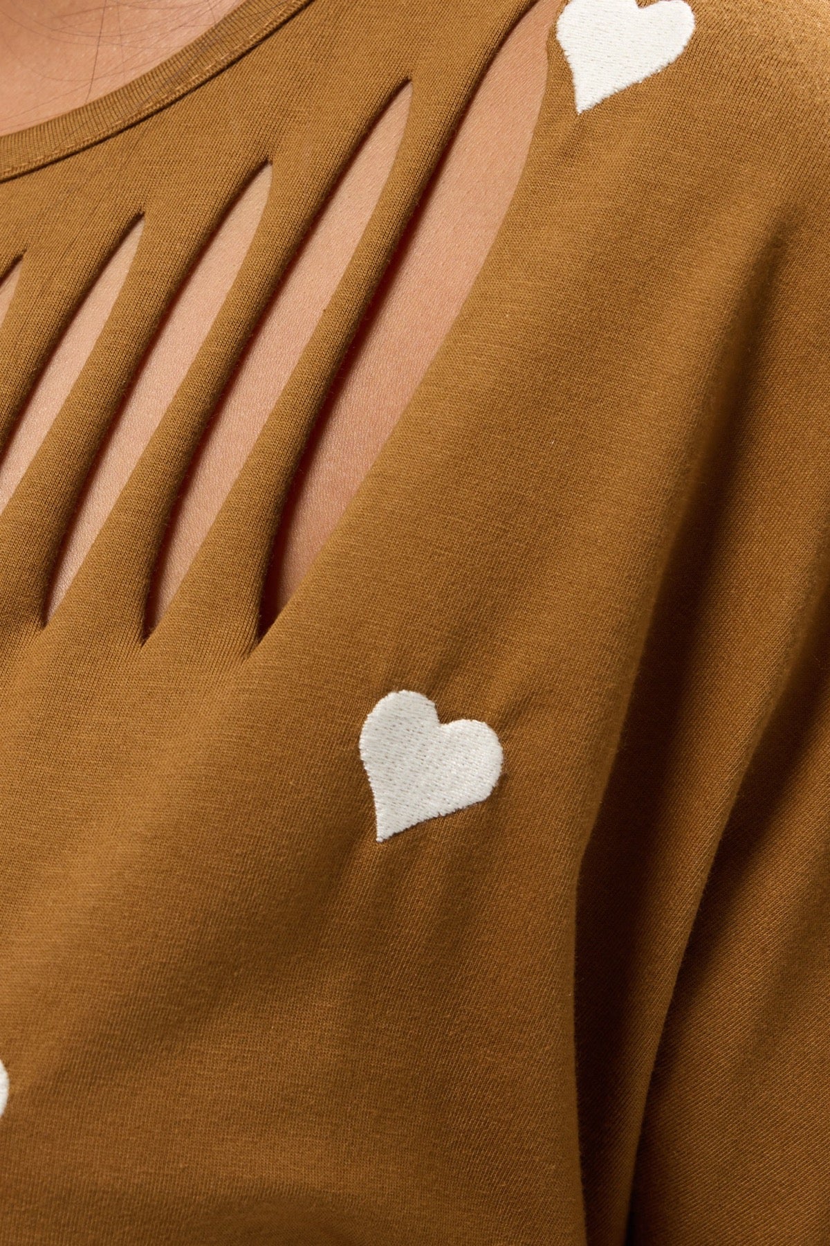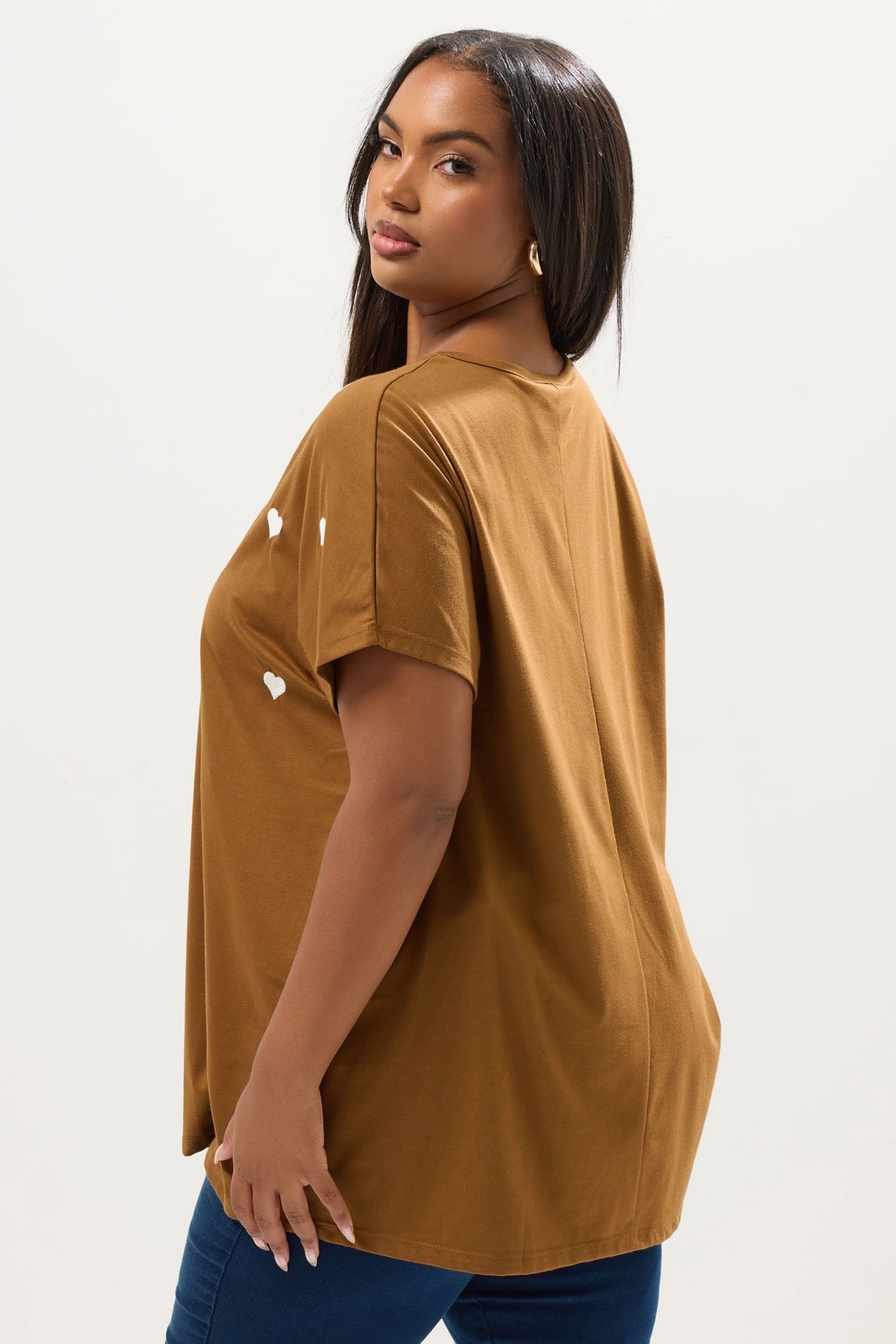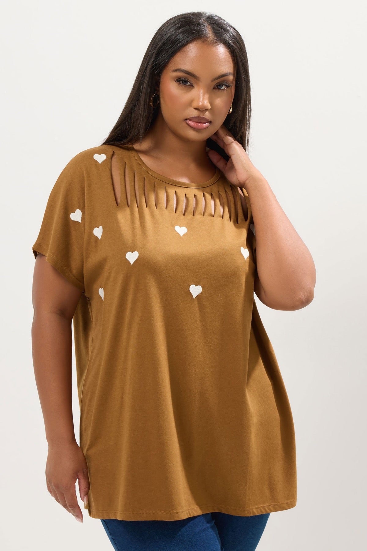 Büyük Beden Bisiklet Yaka Kısa Kollu Kalpli Yırtık Detaylı T-shirt 304392