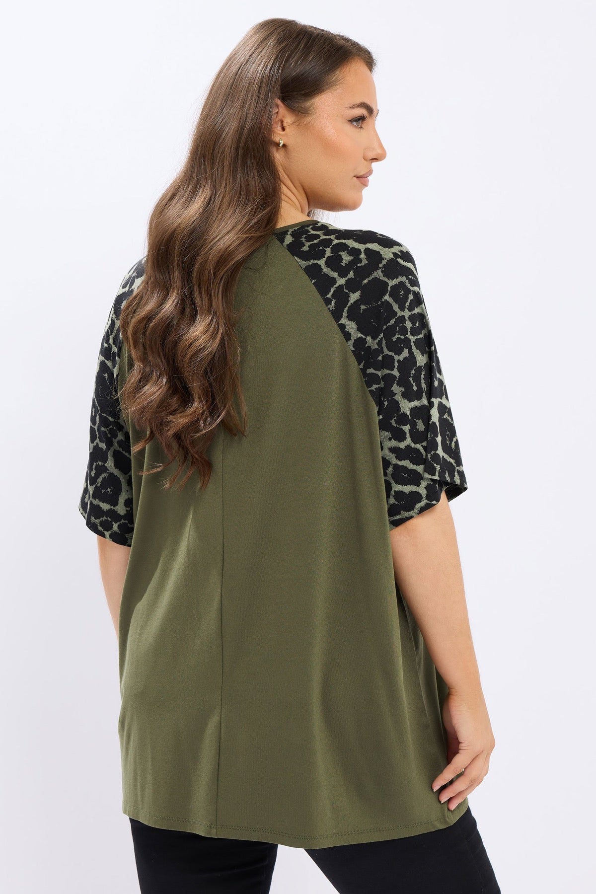 Büyük Beden Bisiklet Yaka Kısa Kollu Leopar Desenli T-shirt 322972