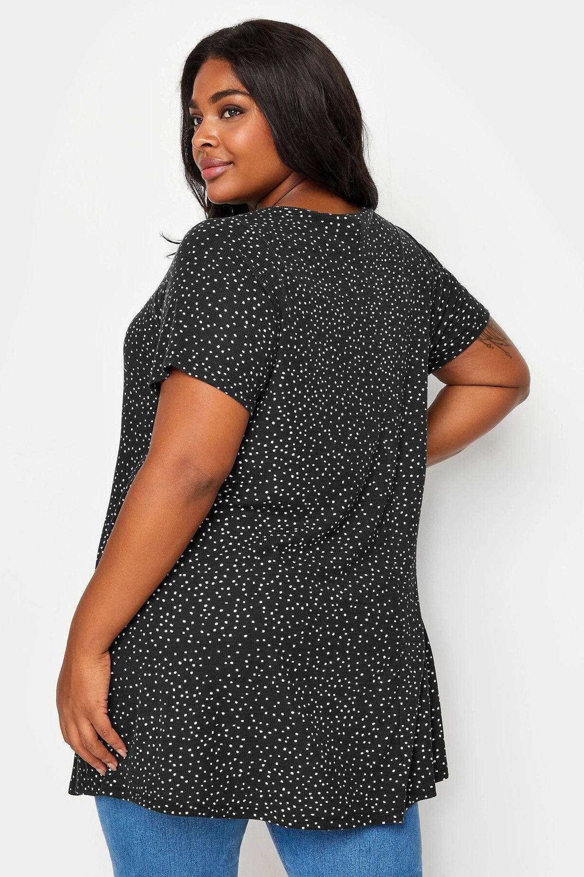 Büyük Beden Bisiklet Yaka Kısa Kollu Nokta Baskılı Bluz 303121